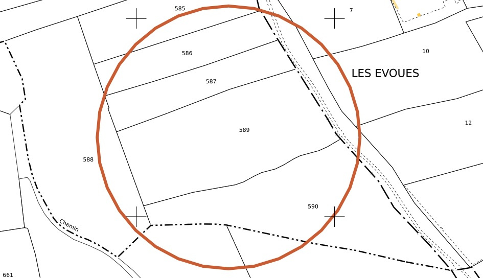 Situé dans un secteur calme, ce terrain arboré est exposé NORD/EST et a 36% de pente en moyenne (Cadastré Section A no589).