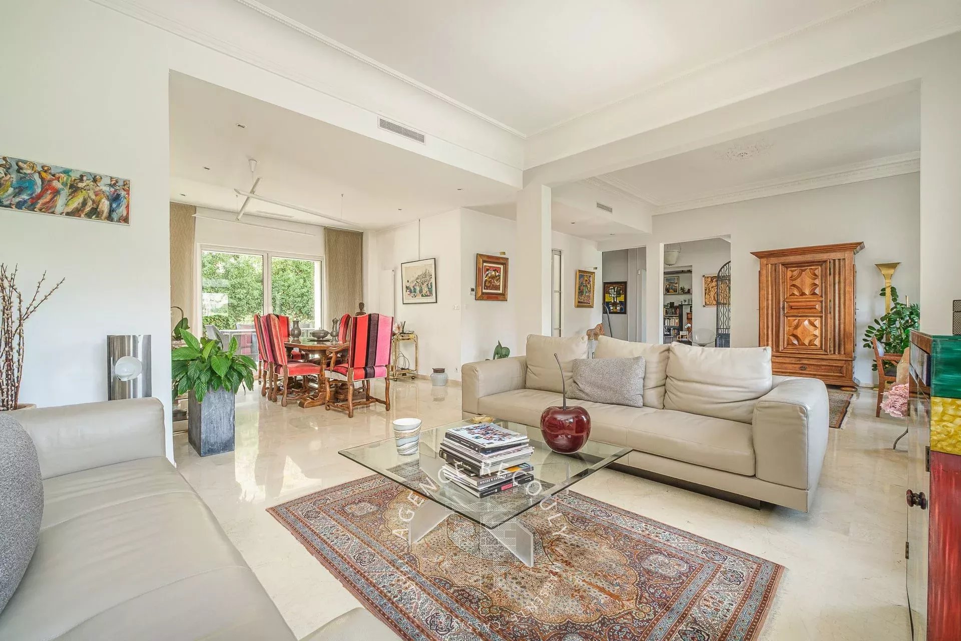 Cette élégante maison de Maître est située dans une rue calme au coeur du Carré d'or, à proximité du parc de Bagatelle, des écoles, des commerces et de toutes les commodités.