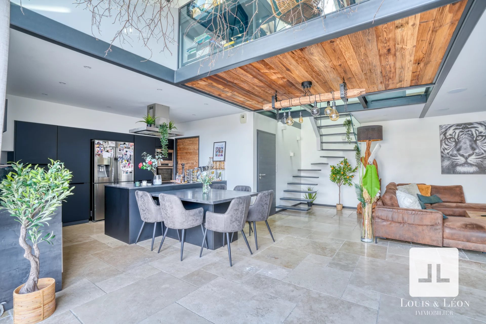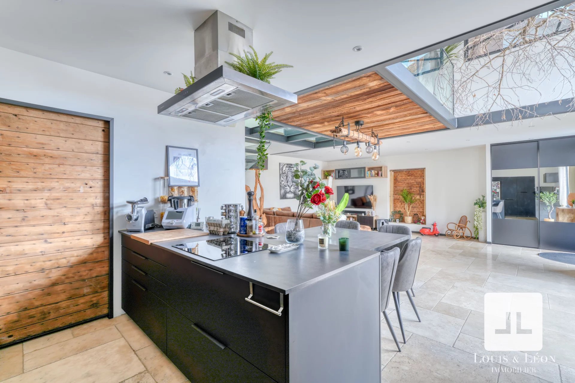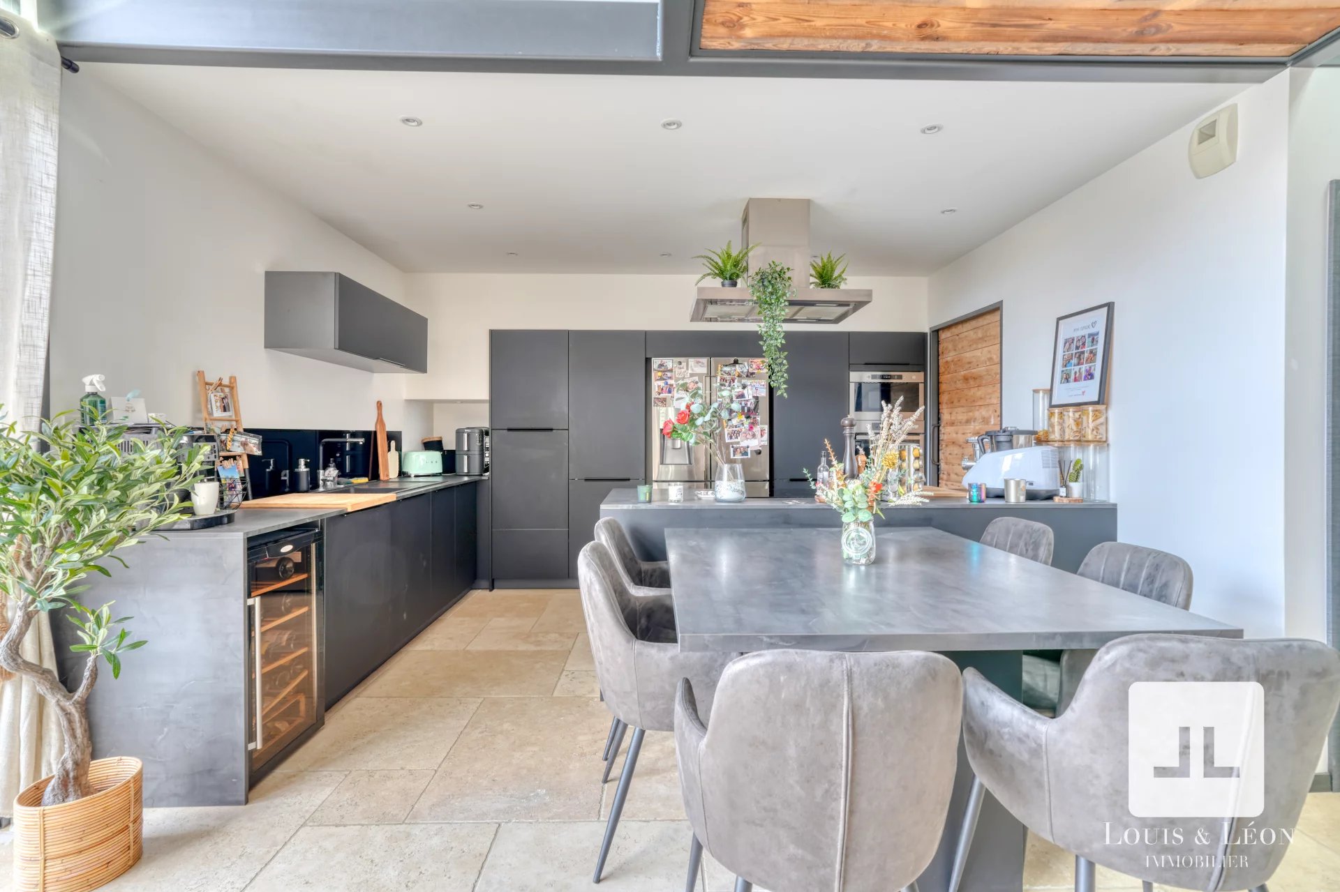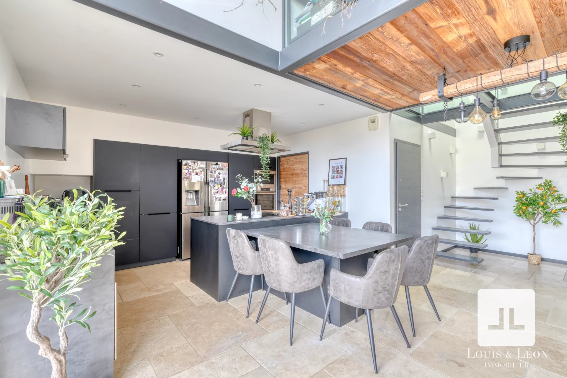 À l’extérieur, vous profiterez d’un agréable espace de vie, parfaitement aménagé, avec une piscine équipée d’un rideau immergé, idéale pour profiter pleinement des beaux jours.