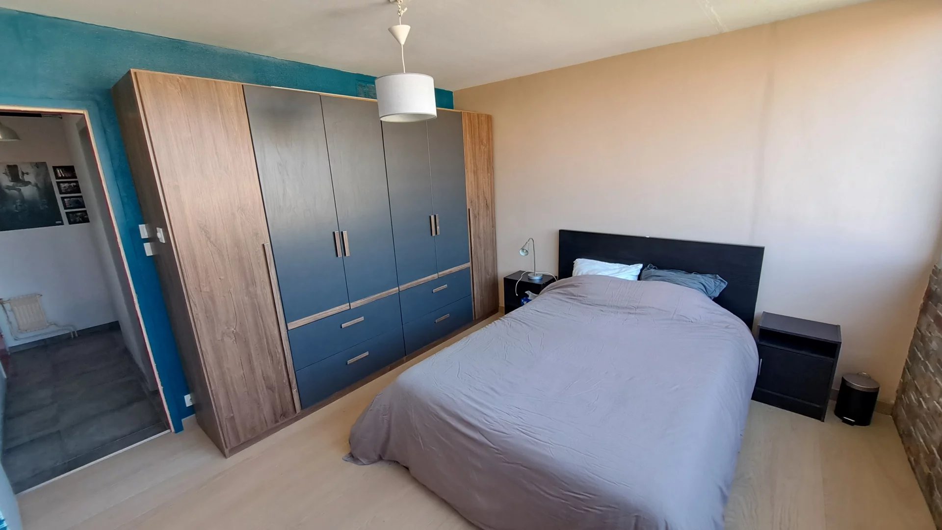 Un couloir dessert la partie nuit avec une salle d'eau complète et une grande chambre sans vis-à-vis.