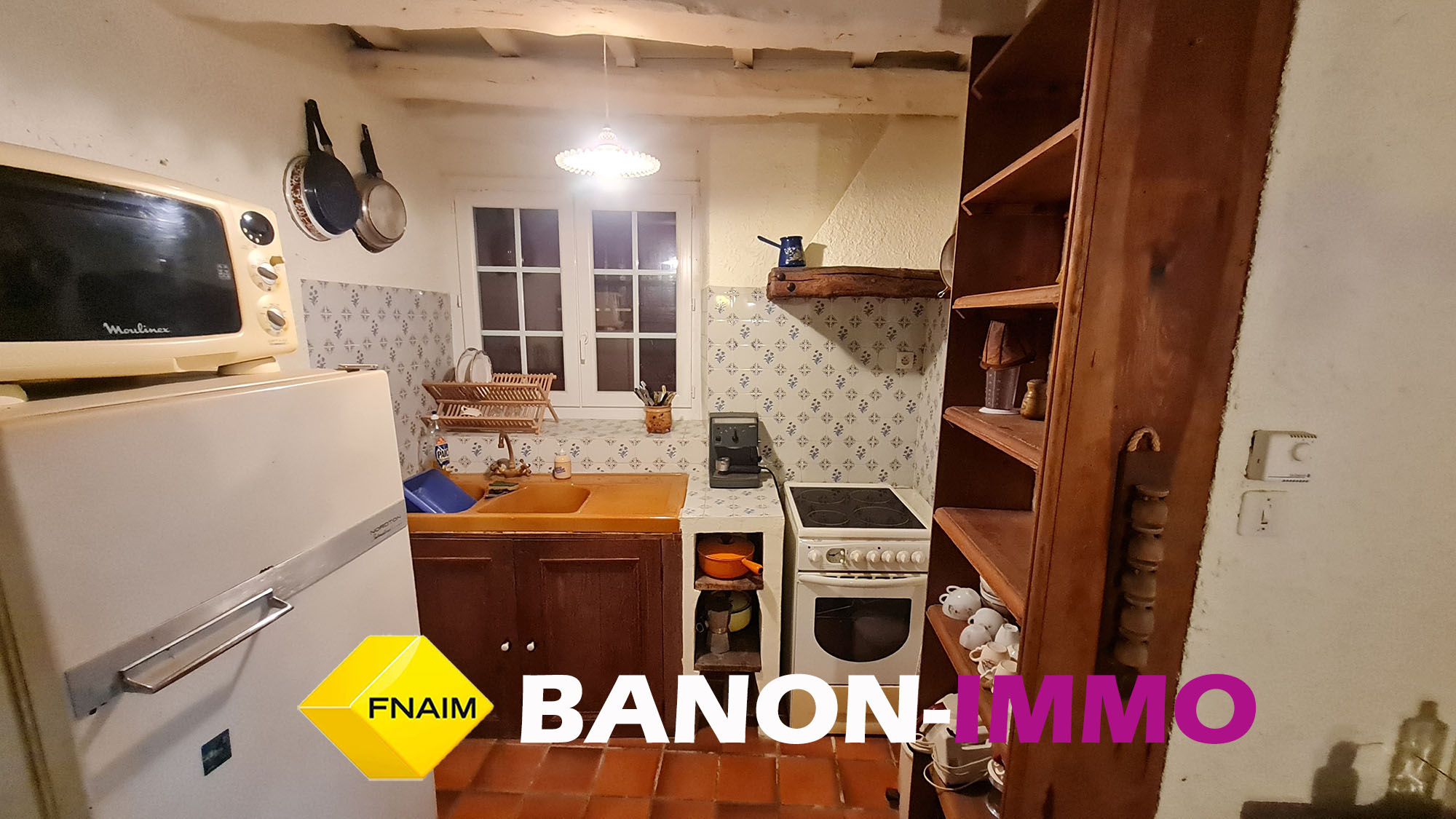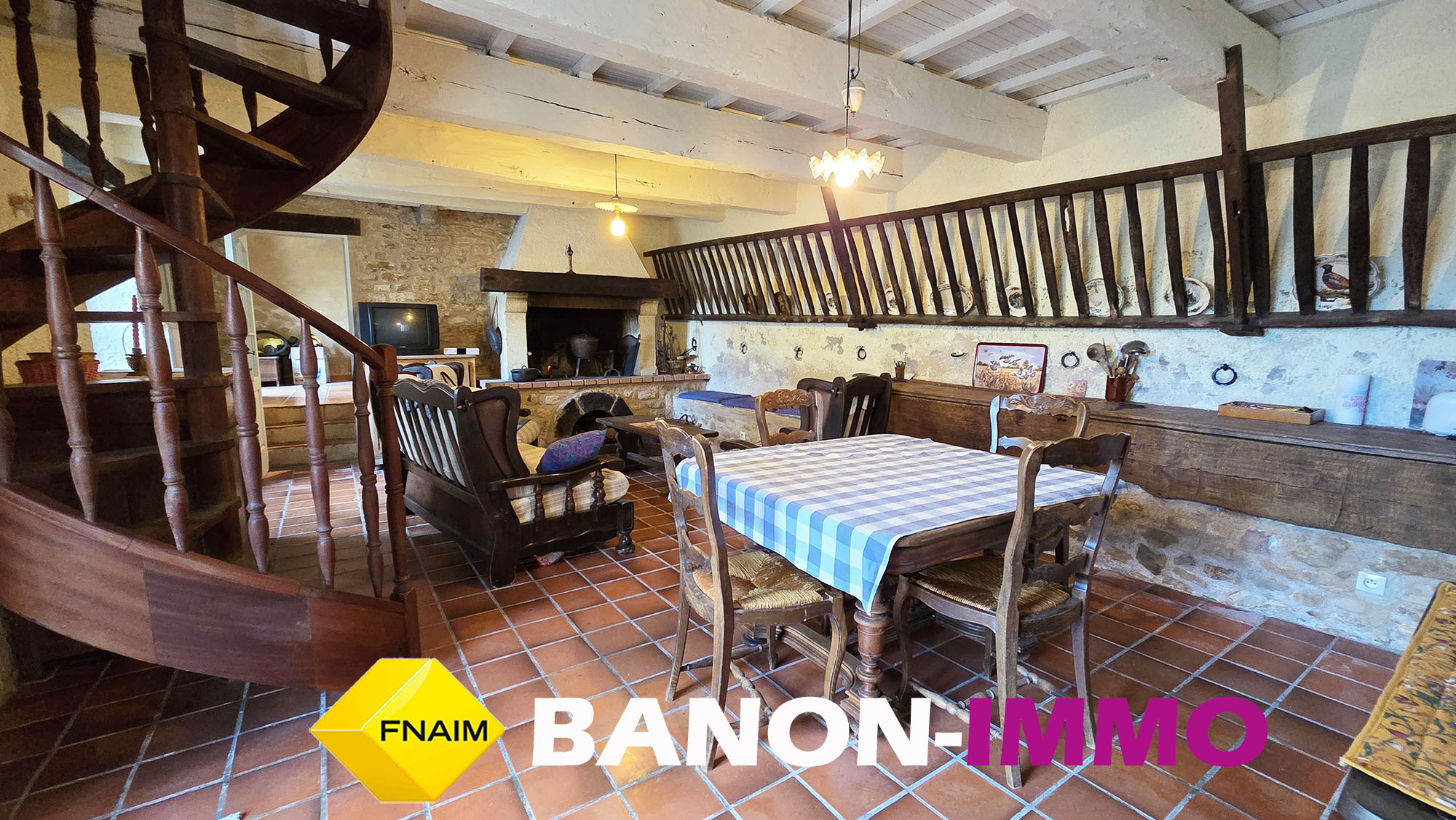 Rez-de-chaussée : Un agréable séjour / cuisine de 36 m2 avec cheminée à foyer ouvert Une chambre avec dressing. Un WC indépendant.