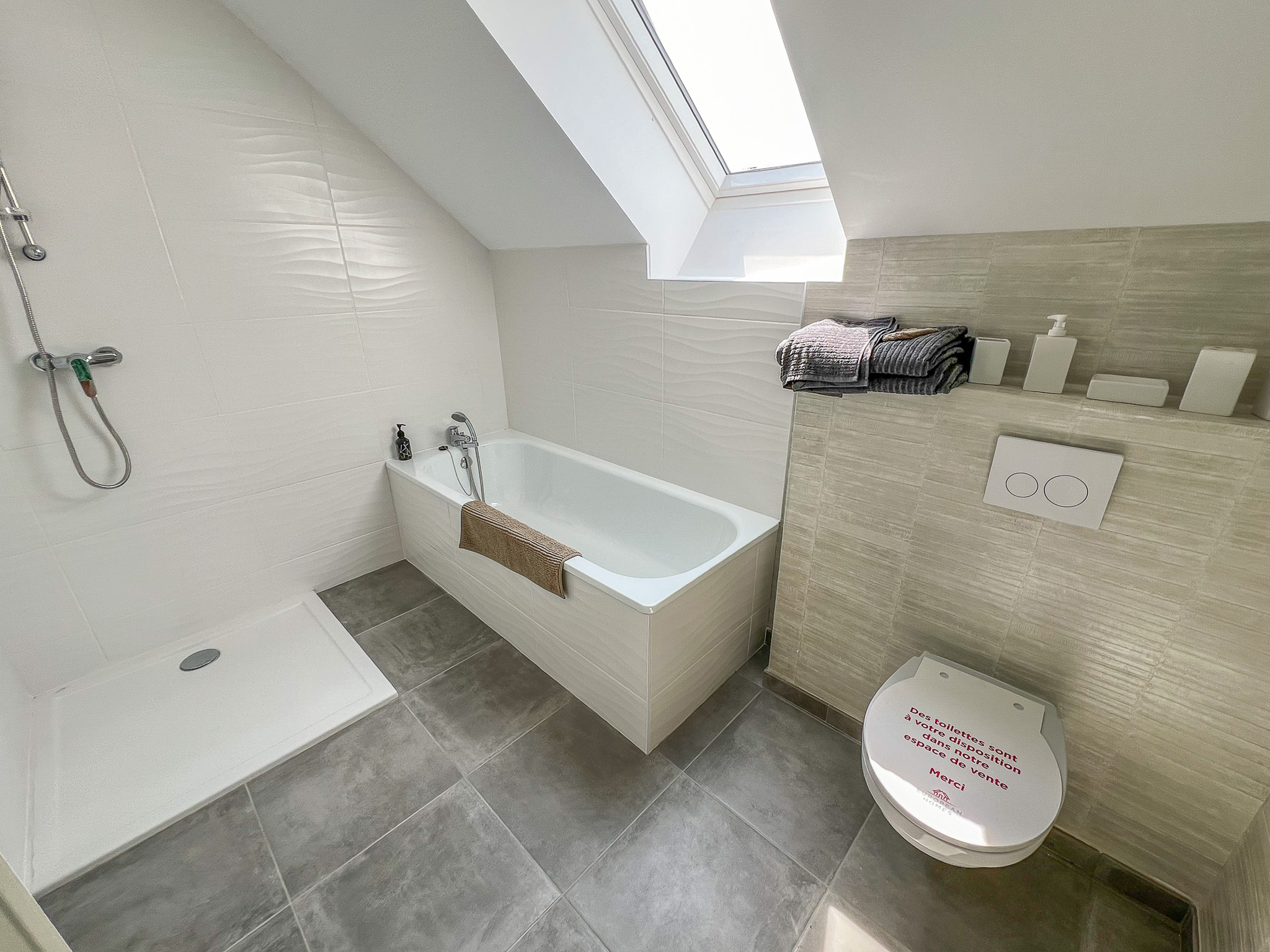 Au rez-de-chaussée, vous profiterez d'un séjour lumineux ouvert sur une cuisine moderne, aménagée et entièrement équipée, offrant un espace de vie convivial et fonctionnel. Une buanderie indépendante complète ce niveau pour un confort optimal au quotidien.