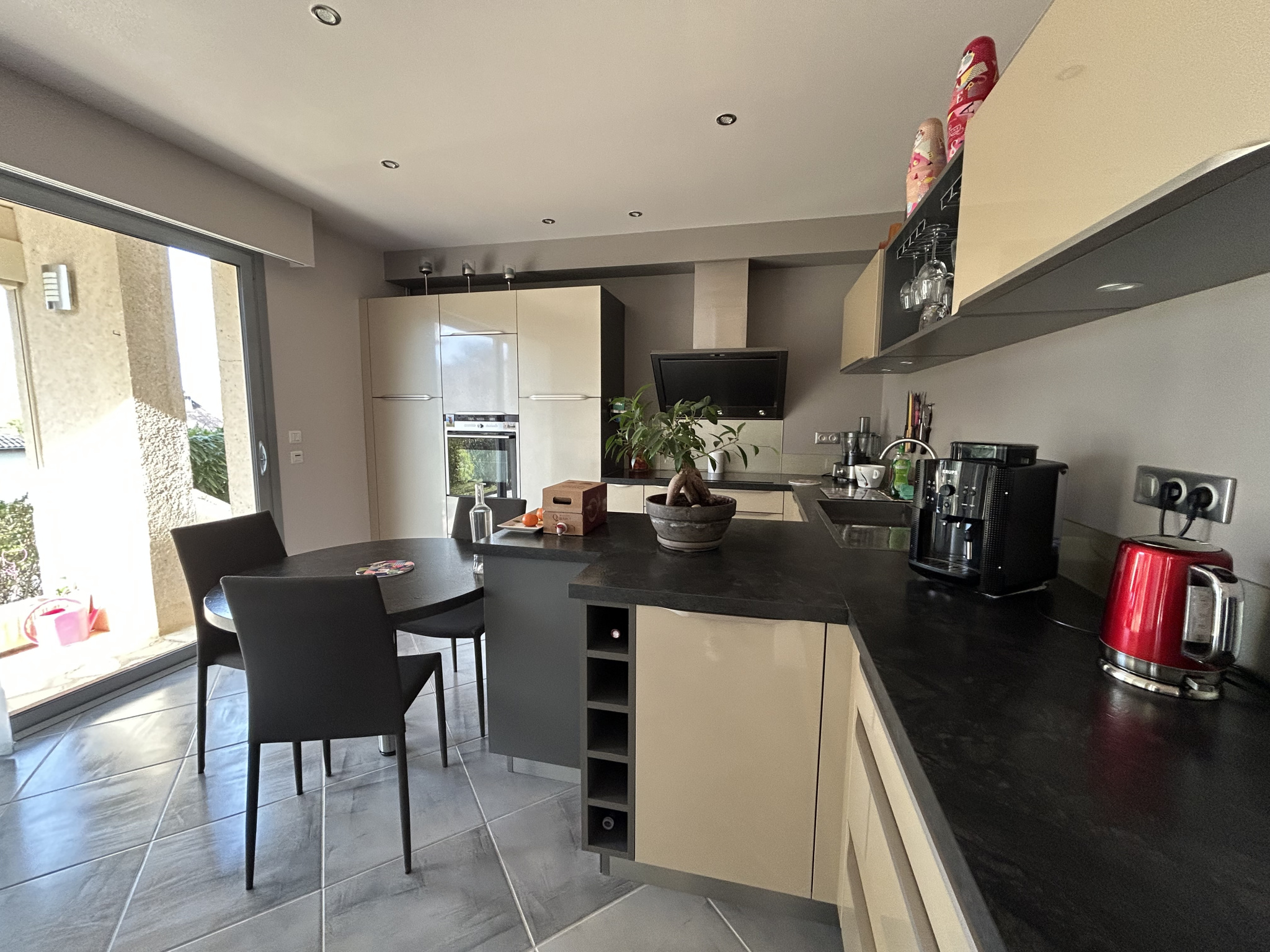 Dans une impasse, dans un quartier résidentiel très calme, cette maison contemporaine est en excellent état général. Elle se compose d'une cuisine meublée équipée et séparée de belle facture, un séjour d'environ 34 m2 avec baies vitrées ouvertes sur terrasse couverte et sur la terrasse de la piscine. Un dressing, trois chambres (18, 15 et 11 m2) chacune avec placards (dont une chambre double ; dressing ou salle de jeux d'environ 15 m2). Deux salles d'eau entièrement refaites de belle composition.