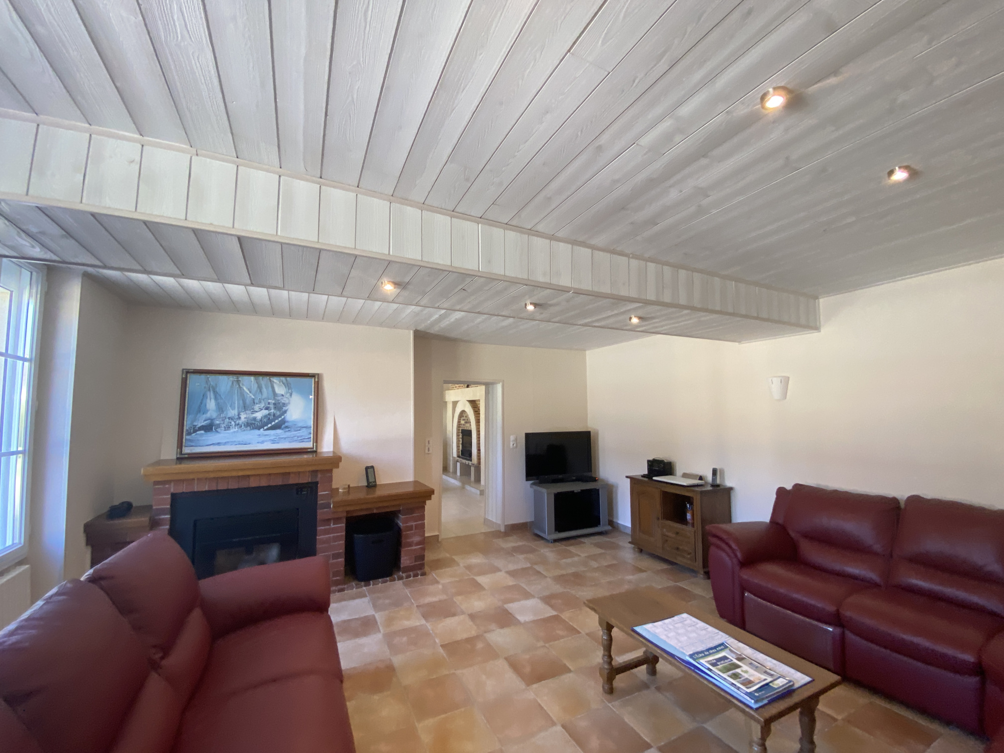 Elle se compose au rez-de-chaussée d'une entrée sur cuisine équipée, d'un salon avec cheminée, d'une salle à manger lumineuse avec accès à la terrasse, d'une salle de bains, de WC séparés et d'une chambre avec placards intégrés.