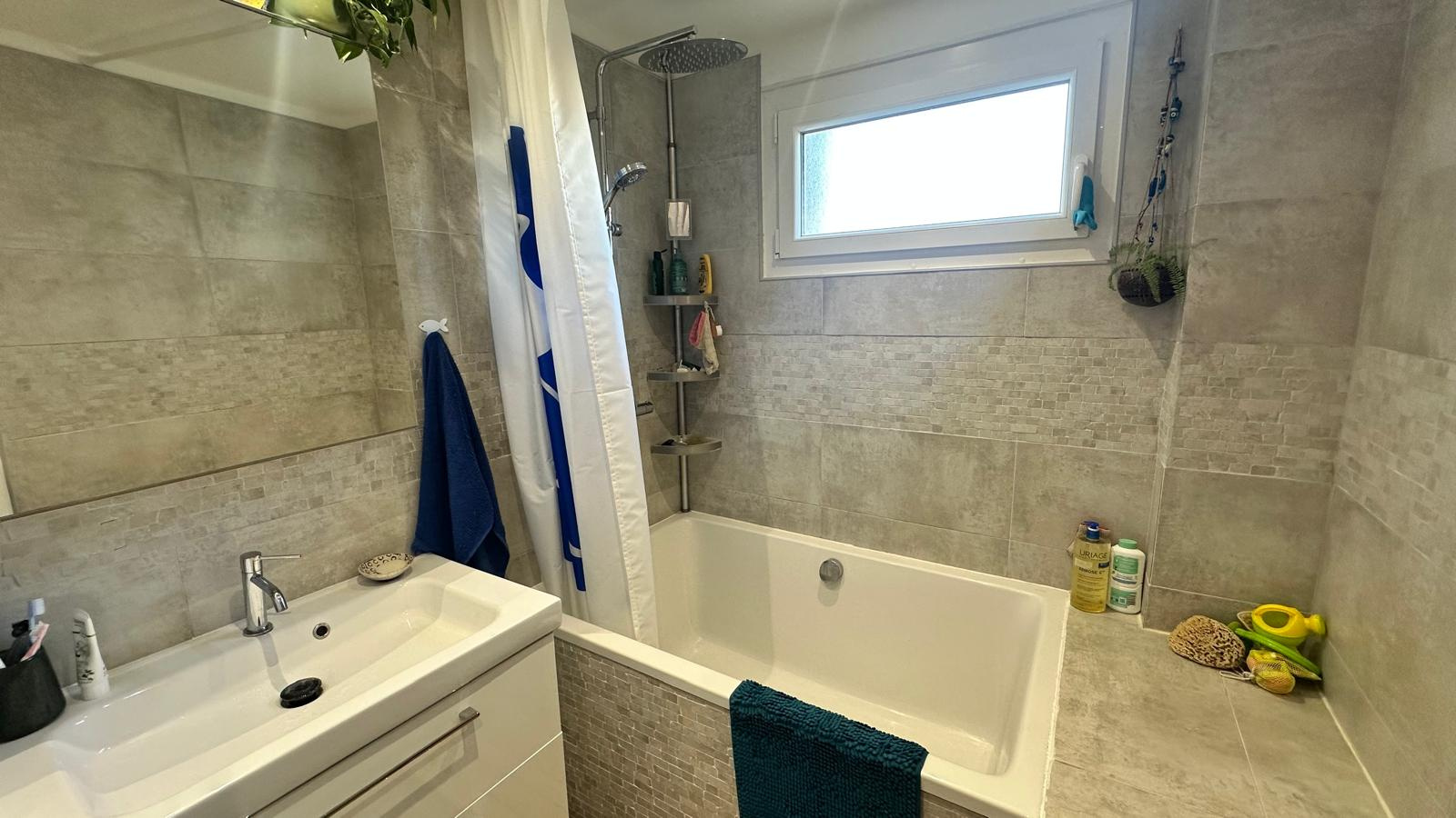 3 chambres, salle de bain refaite à neuf avec baignoire et fenêtre.