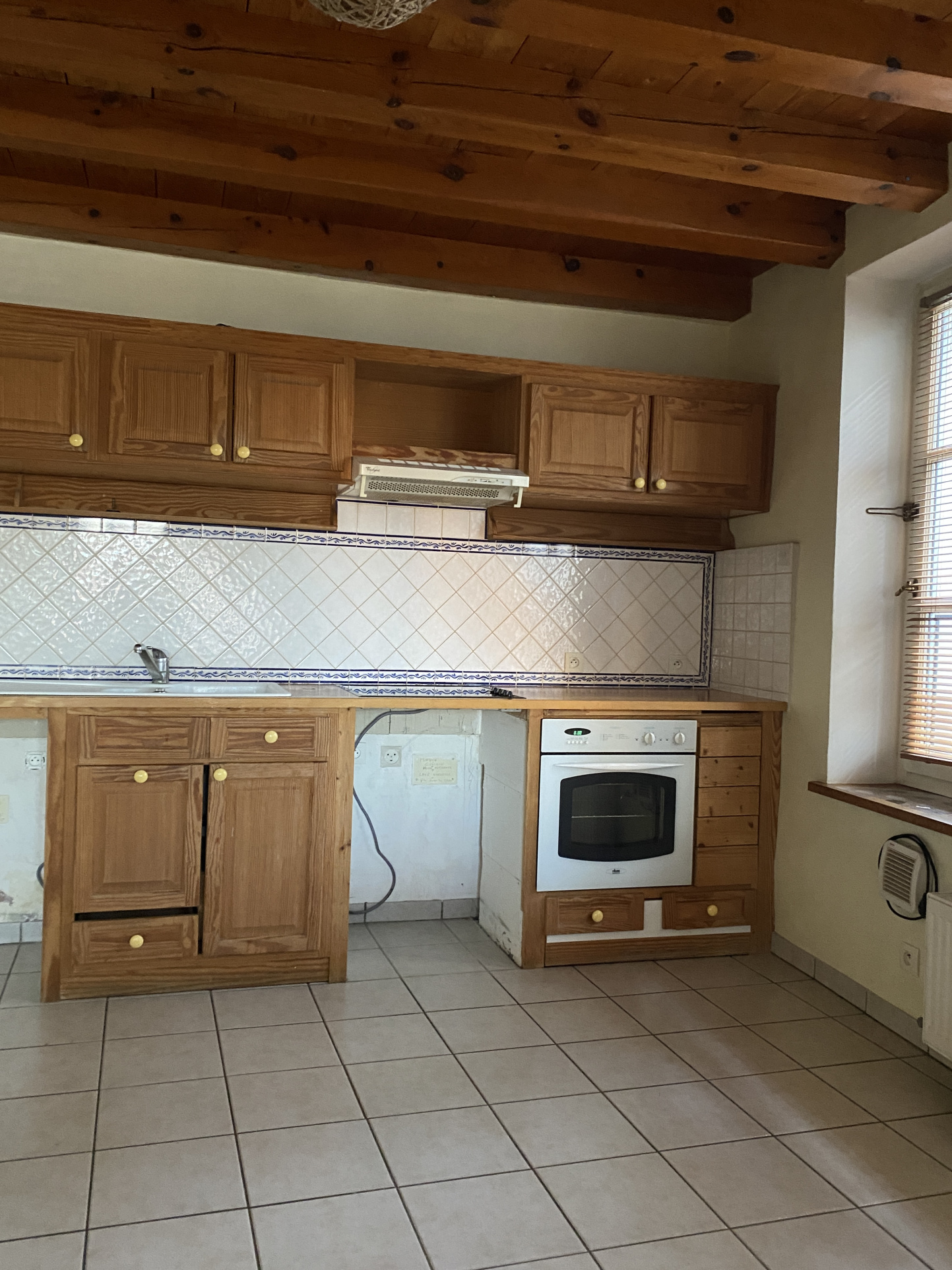 À l'étage, un agréable salon s'ouvre sur une cuisine aménagée, parfaite pour recevoir famille et amis.