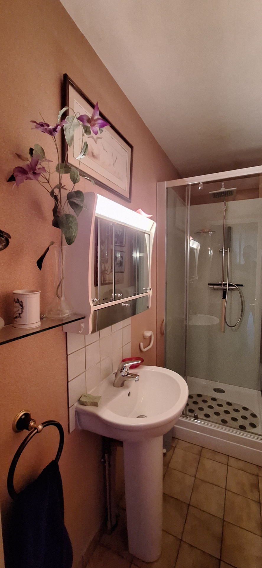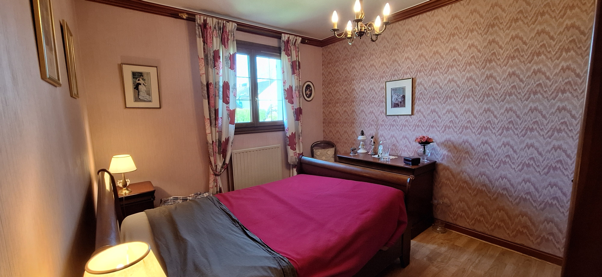 A l'étage un palier qui délivre deux grandes chambres de 17 m2 et 16 m2 avec leurs placards intégrés, une salle de bain et son wc.