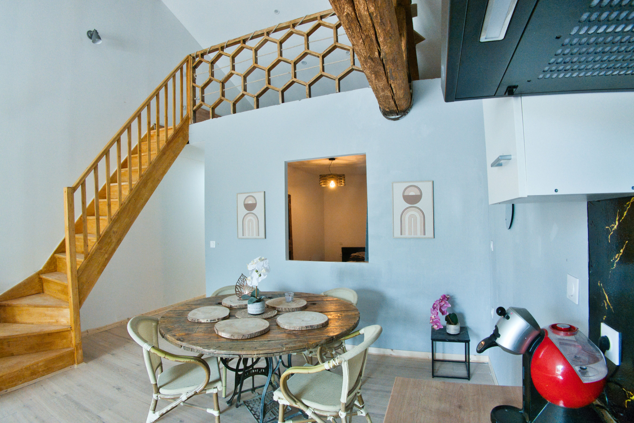 1) Le lot 1 vous propose un grand T2 aménagé de 79 m2 (63 m2 habitables hauteur > 1,80m) composé d'une pièce de vie de 30 m2 avec sa cuisine intégrée, une chambre de 14 m2 + 1 mezzanine de 20 m2. Magnifique SdE en travertin et son ensemble de douche intégré.