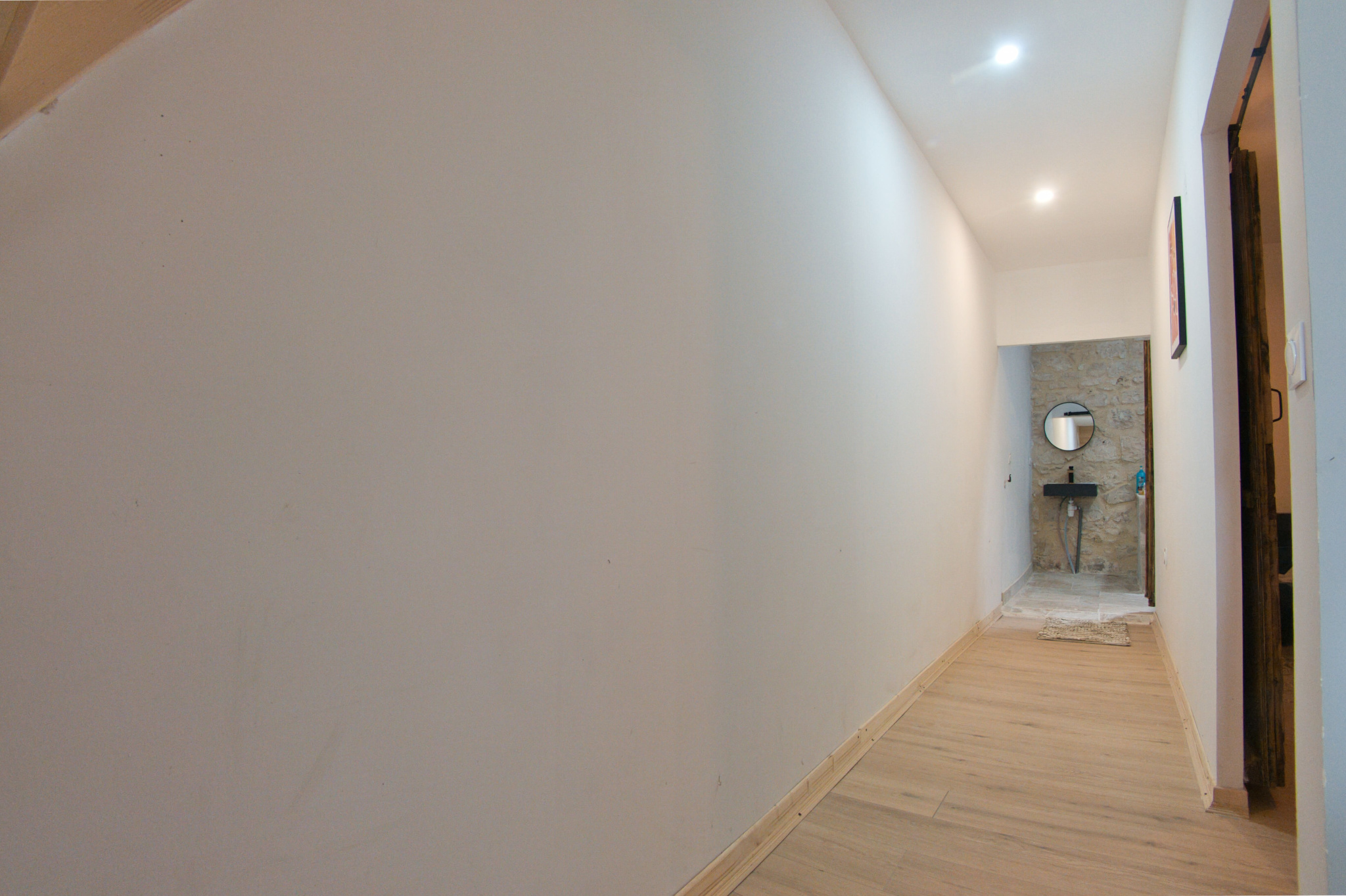 Luminosité et authenticité vous immergeront dans un cocon intimiste : travertin, pierre, charpente traditionnelle soulignant un plafond « cathédrale ».