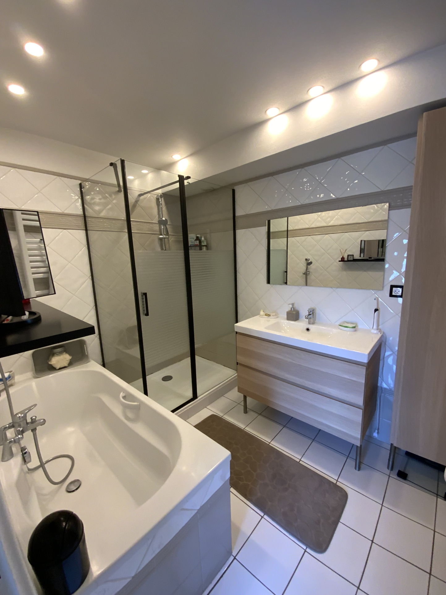 Au rez de chaussée : une pièce de vie de 31 m2 composée d'un séjour spacieux, d'une cuisine ouverte, aménagée et équipée, d'un salon en léger contrebas avec meubles de rangement intégrés. Attenant à la pièce de vie vous retrouverez une chambre ou bureau servant actuellement de salle de jeu puis un dégagement desservant un WC séparé, une salle de bains avec meuble vasque, sèche serviette, baignoire et une grande douche, un placard contenant la chaudière gaz, un cellier recevant un lave-linge et de nombreux rangement, et pour finier, à l'oppposé des pièces de vie vous disposerez du calme de la chambre avec meubles de rangement intégrés ainsi qu'un avec accès à une mezzanine.