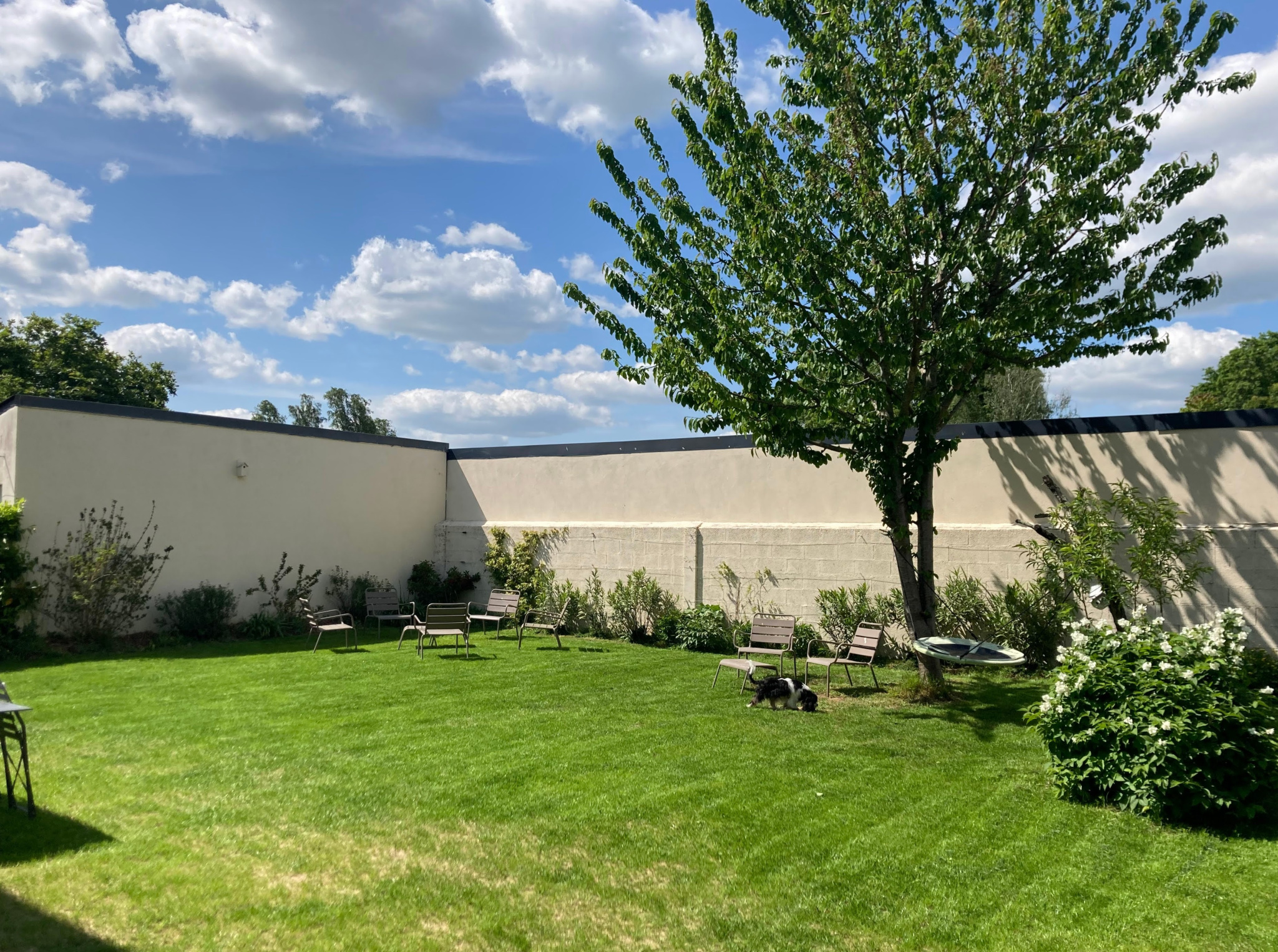 Entrée, grand séjour-salle à manger ouvrant de part et d'autre un agréable jardin clos et arboré, cuisine ouverte aménagée et équipée, une chambre au rez-de-chaussée avec salle d'eau privative double vasque et douche, toilette d'invités, arrière-cuisine/chaufferie buanderie.
