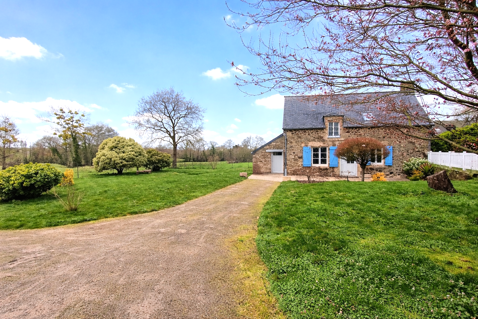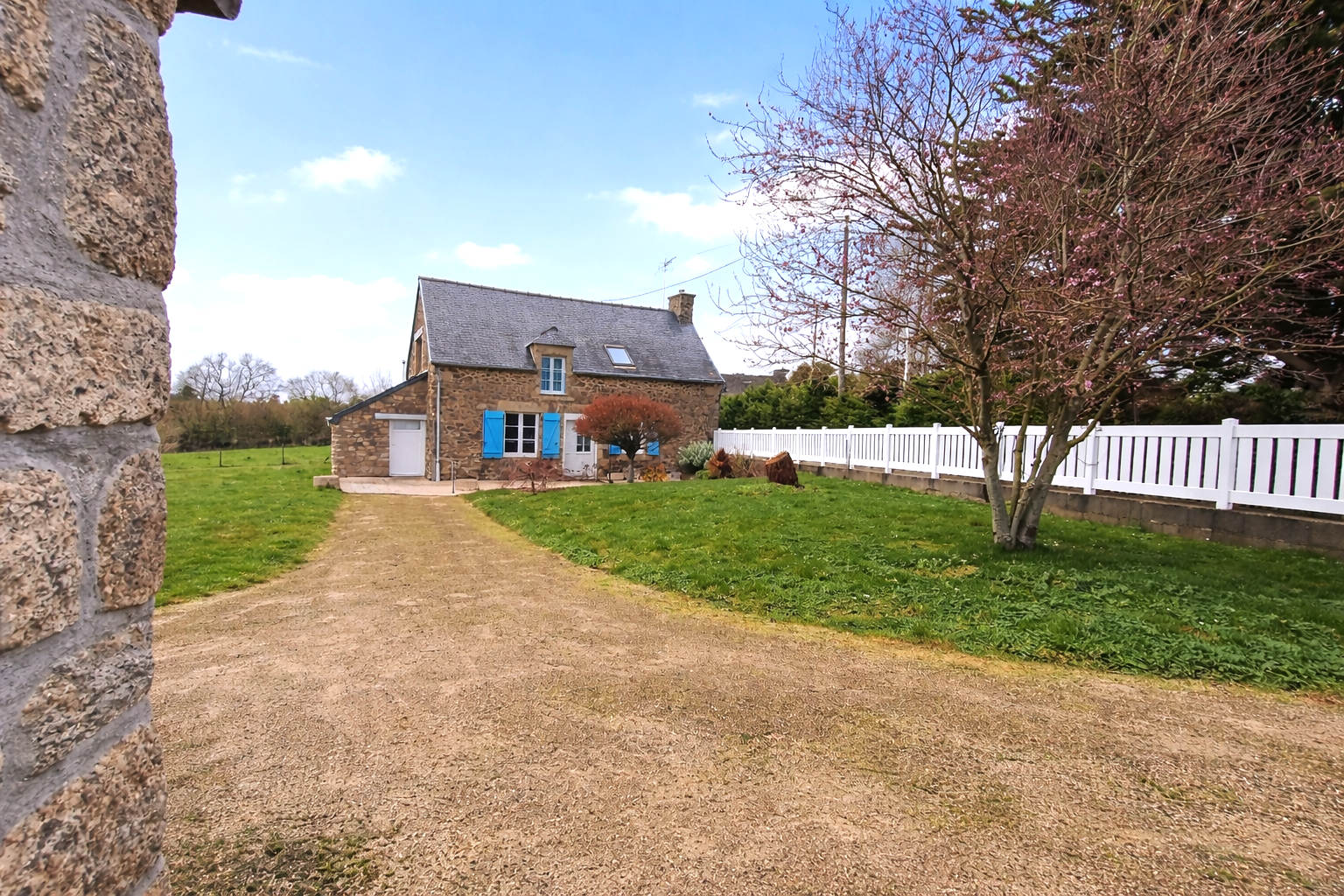 Dans un petit hameau confidentiel, au coeur d'une campagne douce et préservée, cette authentique maison en pierre offre un véritable havre de paix, à seulement 4 km du bourg et 7 km des plages. Implantée sur un terrain clos de 560 m2, elle développe 69 m2 habitables (79 m2 utiles) parfaitement rénovés. Si ses volumes restent intimistes, son état est irréprochable : aucun travaux à prévoir, tout a été pensé avec soin. Sa façade de caractère aux volets bleus, sa terrasse ouverte sur la nature et son environnement sans nuisance composent un cadre idéal pour se ressourcer. Deux chambres, une cuisine entièrement équipée, une atmosphère chaleureuse et lumineuse : cette maison constitue une résidence secondaire parfaite pour qui recherche le calme, la quiétude et la proximité de la mer, tout en conservant le charme authentique de la pierre. Un lieu simple, élégant et apaisant. 296 500 EUR FAI