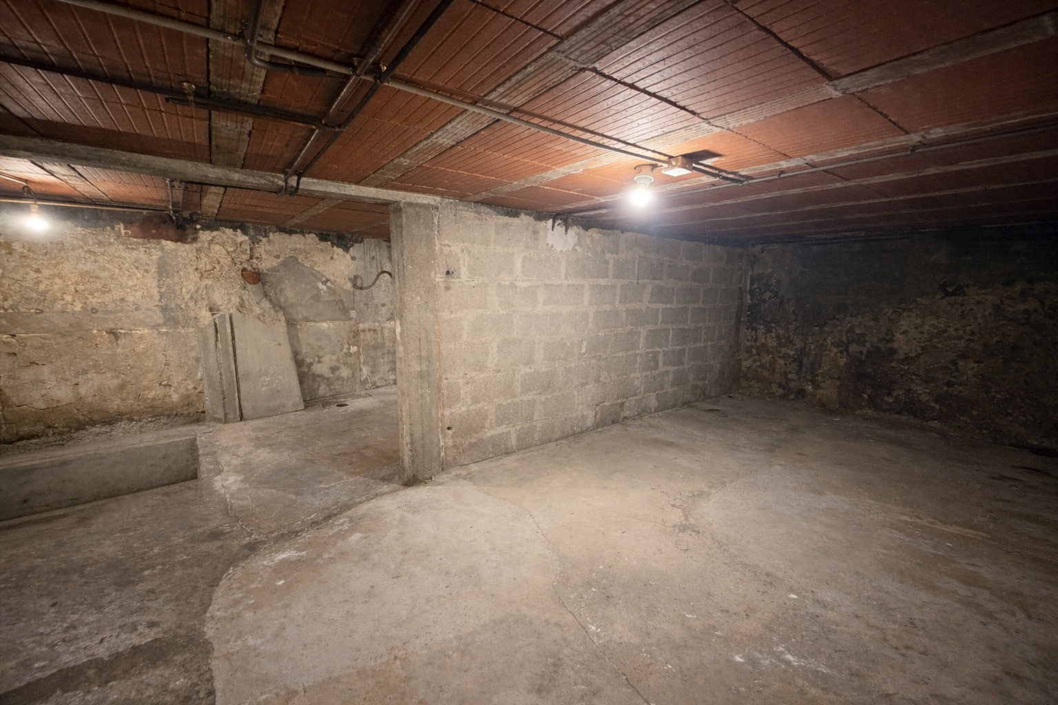 - d'une cave en sous-sol pour stockage ou réserve