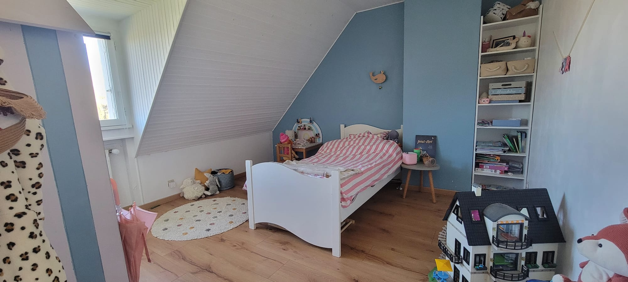 À l'étage, un palier dessert trois autres chambres, dont une de plus de 30 m2, ainsi qu'une salle d'eau avec WC et une pièce de rangement pouvant servir de dressing.