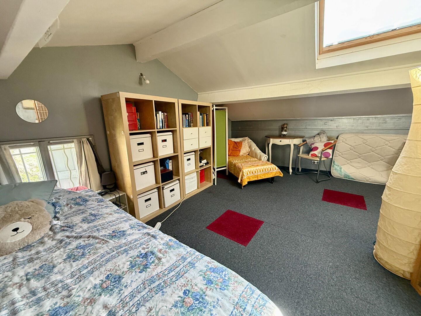 Volumes exceptionnels : Deux superbes chambres de 20 m² chacune occupent les premiers niveaux (coup de coeur pour les tomettes d'époque !). Le dernier étage dévoile une vaste pièce mansardée de 27 m², parfaite pour une suite parentale, une salle de jeux ou un atelier d'artiste.