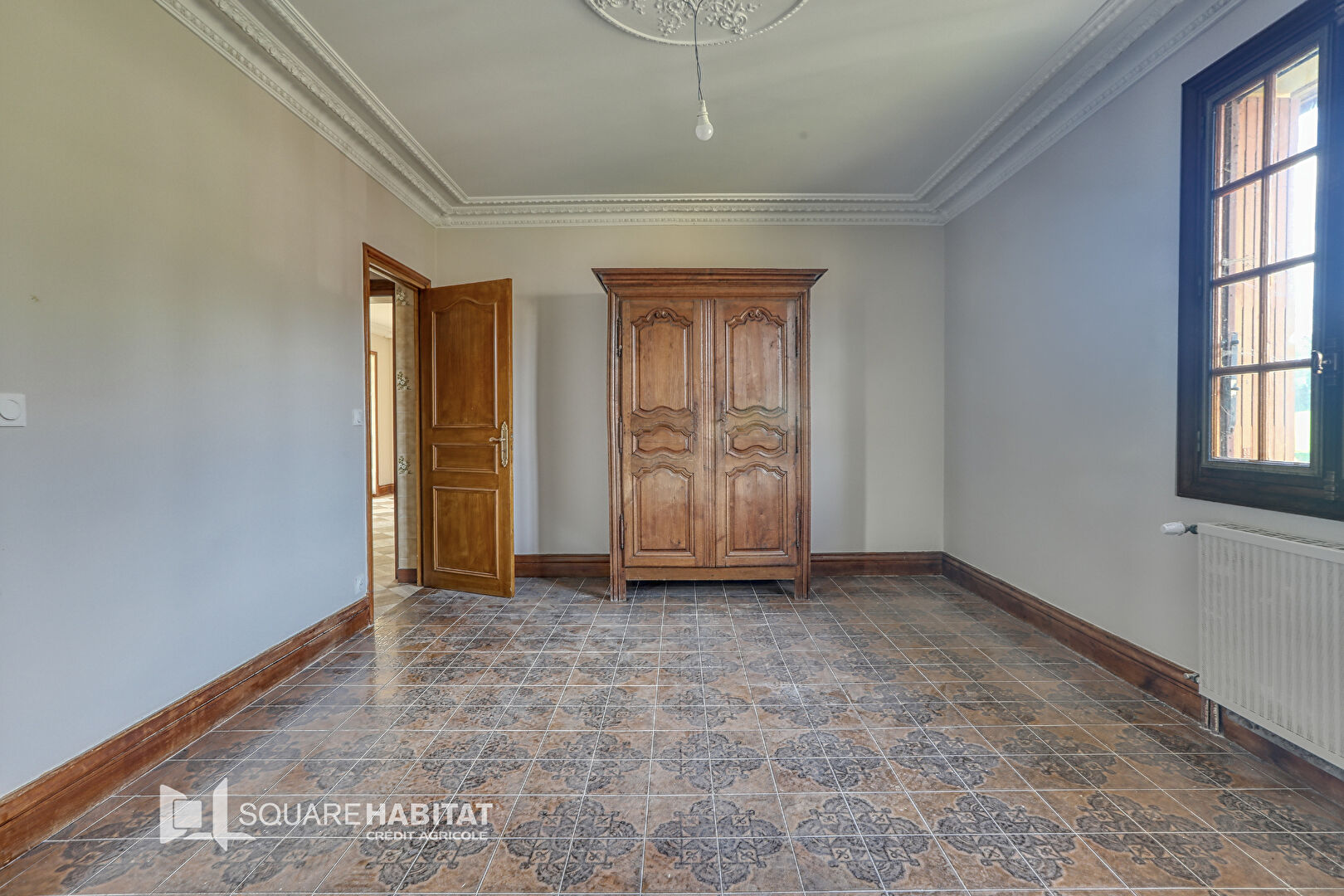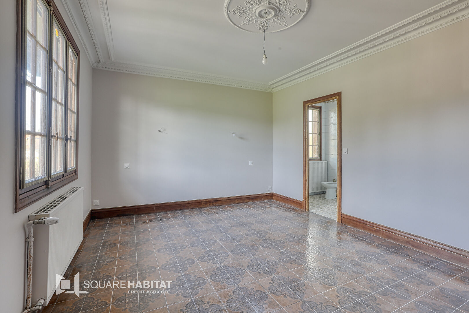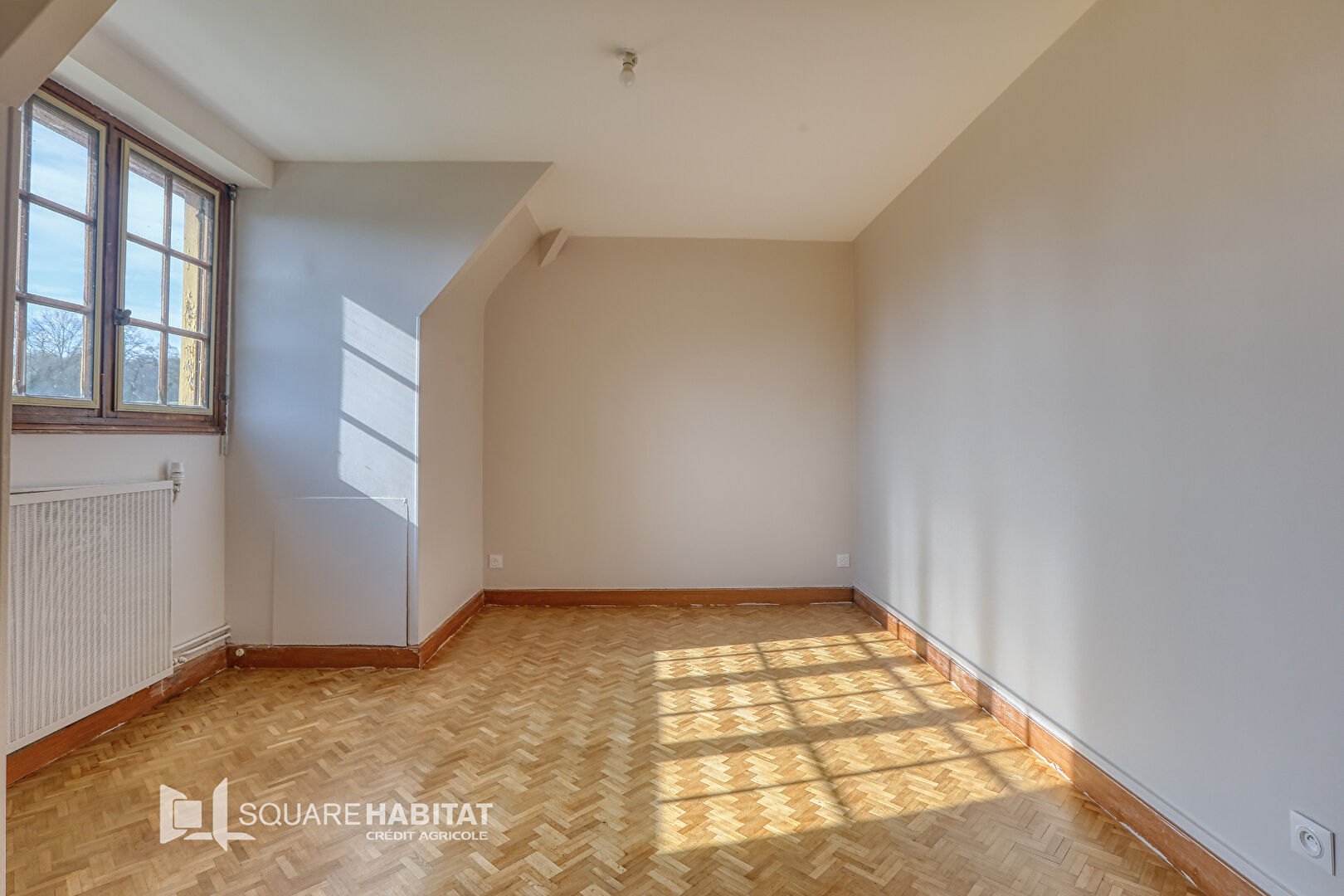 La visite se poursuit à l'étage où trois chambres sont à découvrir, dont deux possèdent une salle d'eau. Un espace bureau est également présent et une cinquième chambre reste à aménager.