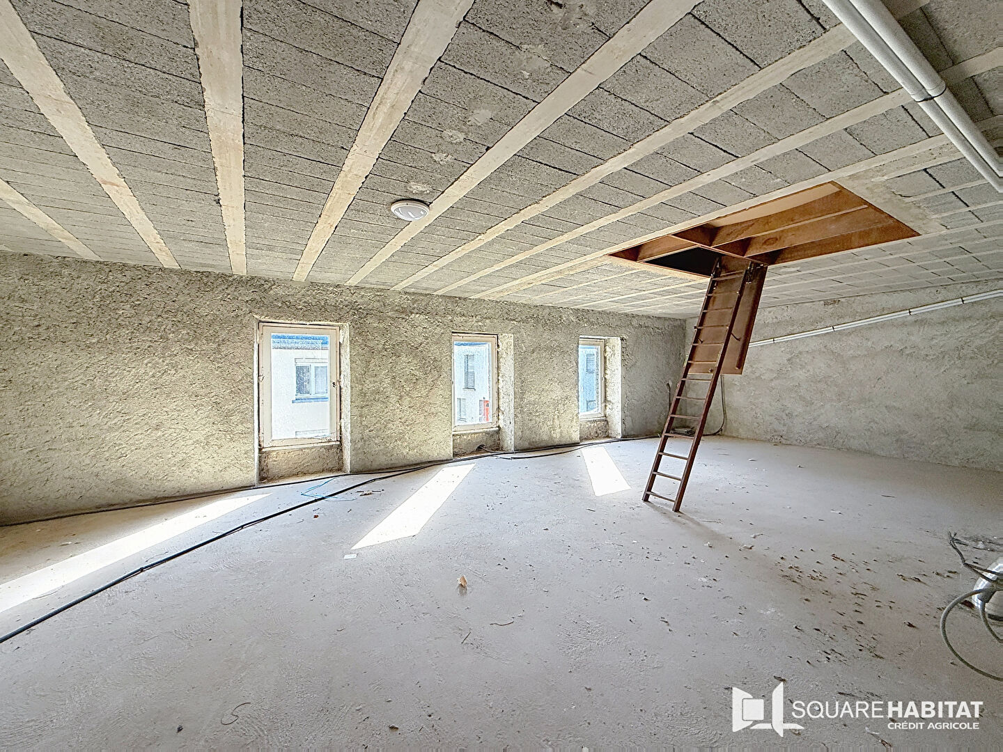 L'étage comprend une grande pièce à aménager avec grenier au-dessus.