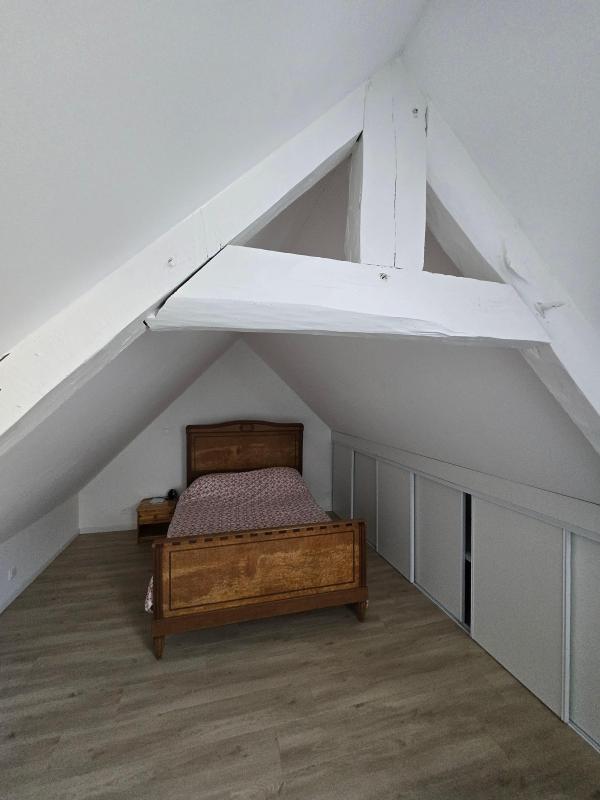Au second niveau, une spacieuse chambre parentale mansardée apporte volume et cachet supplémentaire.
