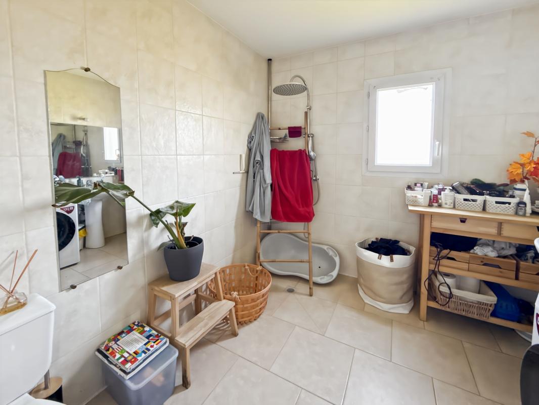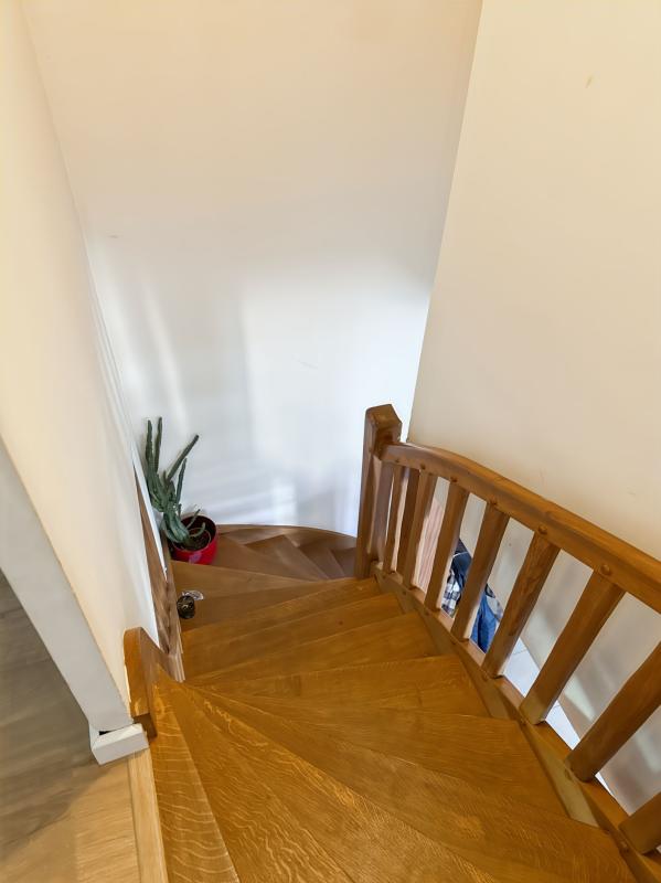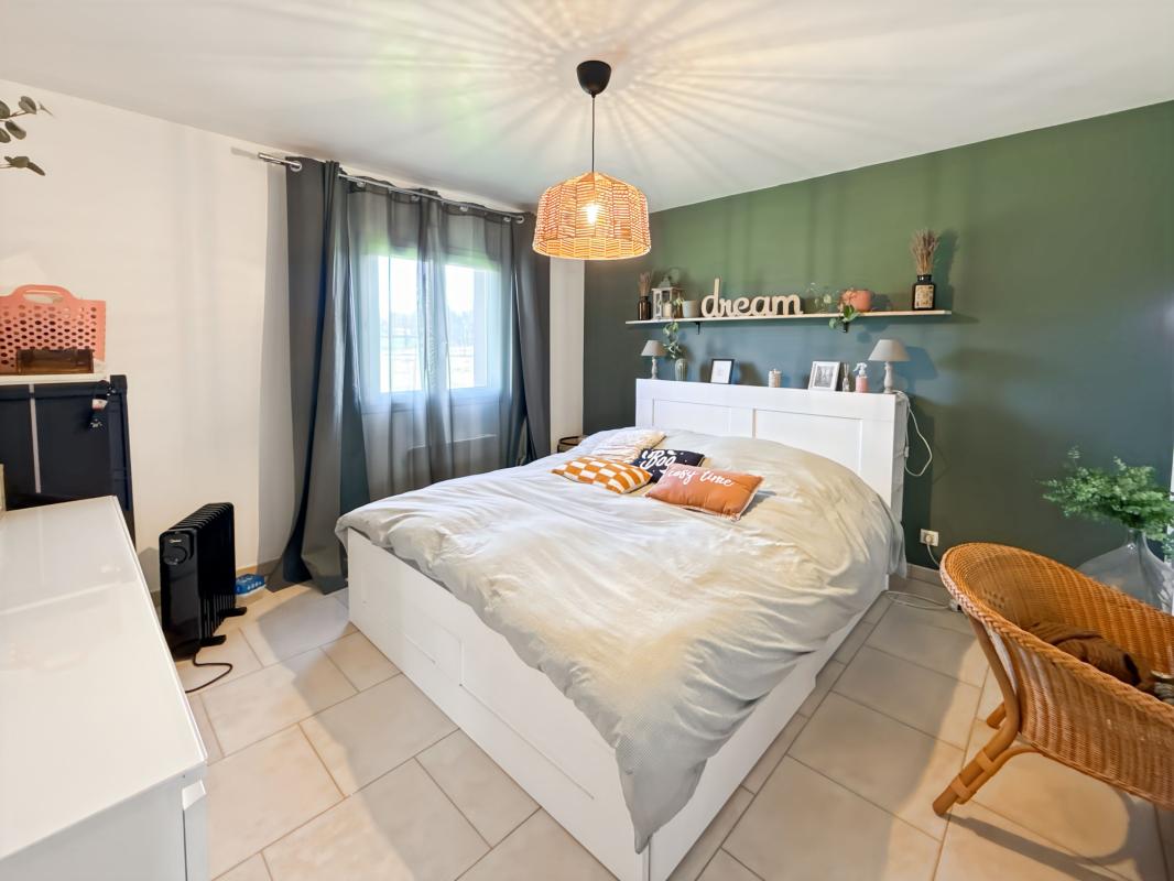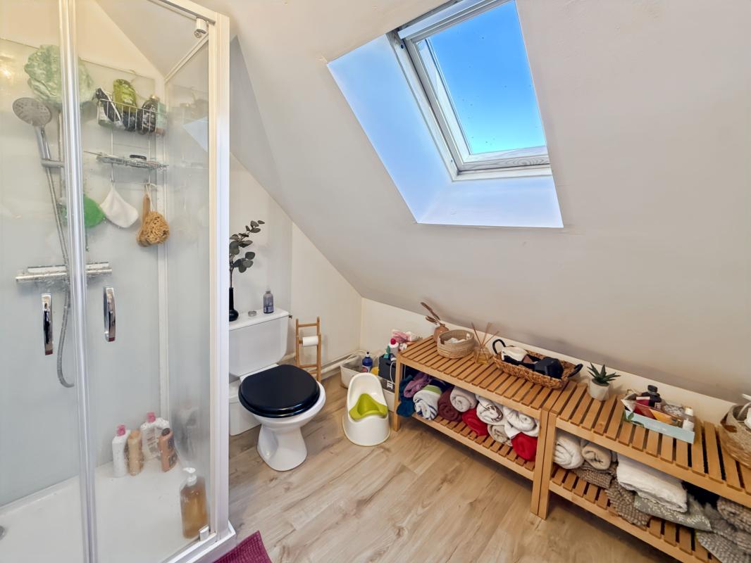 À l'étage, un dégagement dessert deux belles chambres, dont une avec dressing, ainsi qu'une seconde salle d'eau avec WC, offrant un espace nuit fonctionnel et bien organisé.