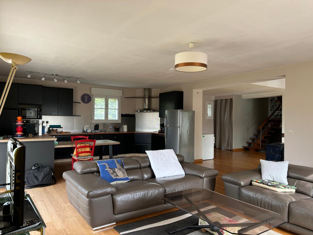 La pièce de vie, spacieuse et conviviale, s'organise autour d'un grand espace ouvert comprenant un salon chaleureux, une salle à manger, une cuisine ouverte entièrement équipée et une véranda lumineuse qui prolonge agréablement l'espace de vie.