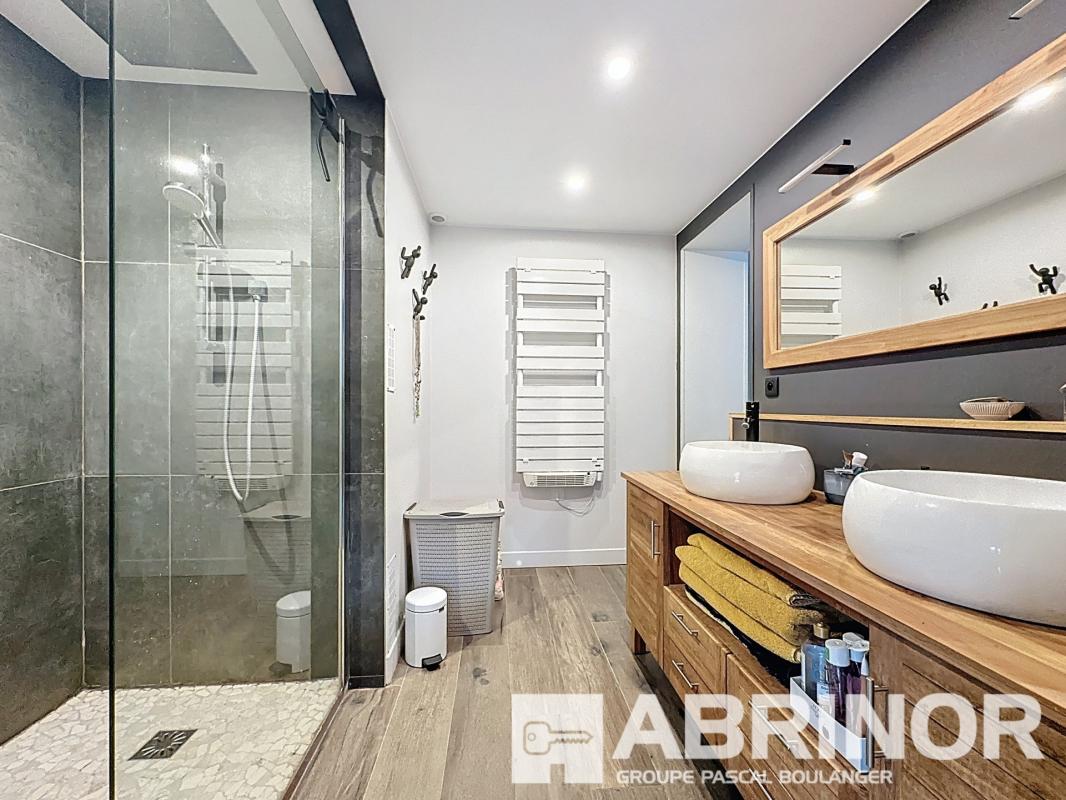 Vous bénéficiez d'une grande pièce de vie lumineuse, avec parquet massif et cheminée à pellets, ouverte sur une cuisine moderne avec îlot central et espace repas. La maison possède une suite parentale complète en rdc, avec sdd et dressing indépendant.