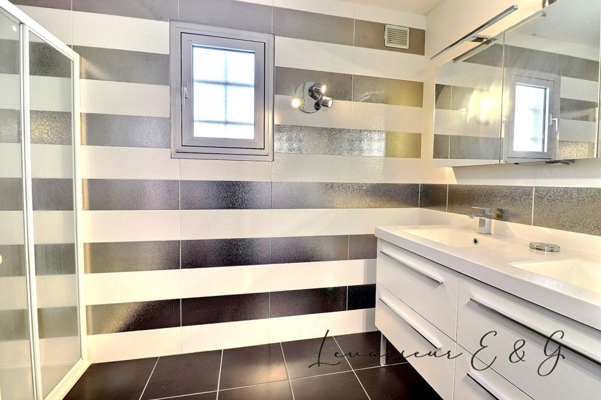 A l'étage, un palier dessert deux chambres supplémentaires, dont une petite chambre pouvant servir de bureau ou de chambre d'enfant, une salle de bain, un WC indépendant et un palier avec accès à un patio.