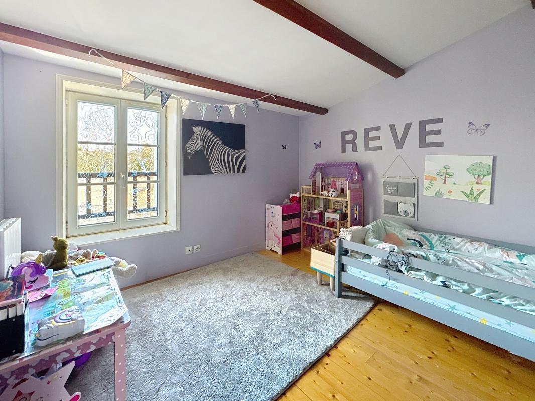 A l'étage : un palier desservant trois chambres avec placards, une salle d'eau et un wc.