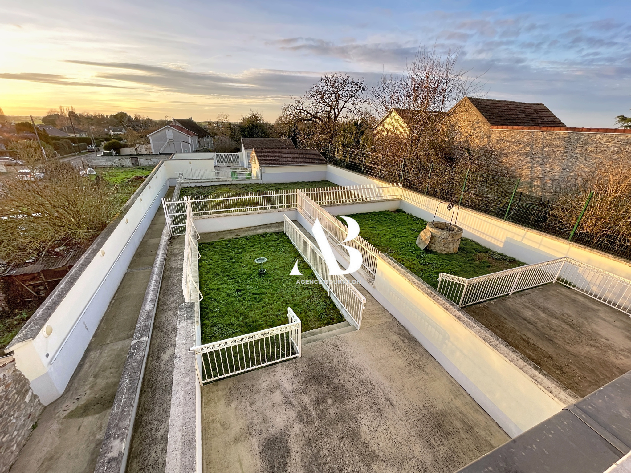 Edifié sur 1 323 m2 de terrain clos avec un puits.