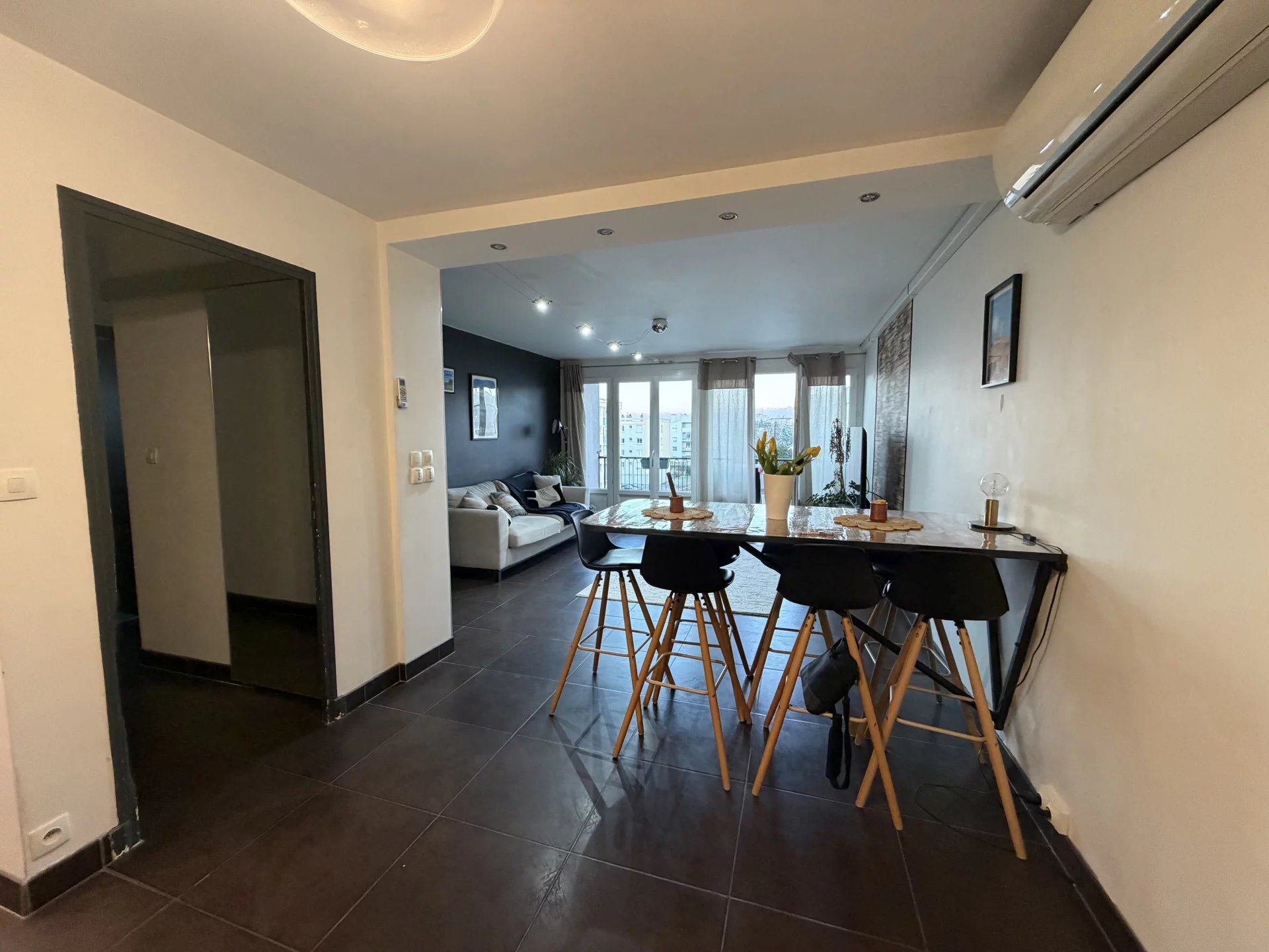 - Belle pièce de vie lumineuse avec balcon et vue dégagée