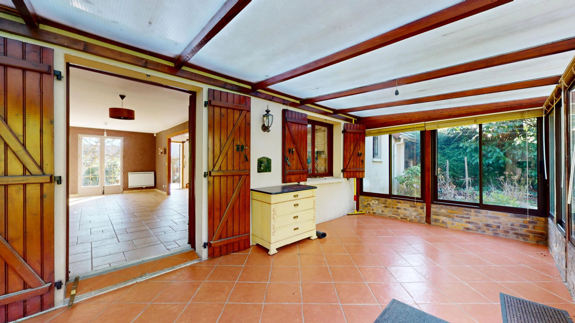 Dès l’entrée, vous découvrirez une pièce de vie traversante et extrêmement lumineuse grâce à sa double exposition Est/Ouest. La cuisine semi-ouverte s’intègre harmonieusement à l’espace et le tout est prolongé par une terrasse couverte, permettant de profiter du calme et de la verdure quelle que soit la saison.