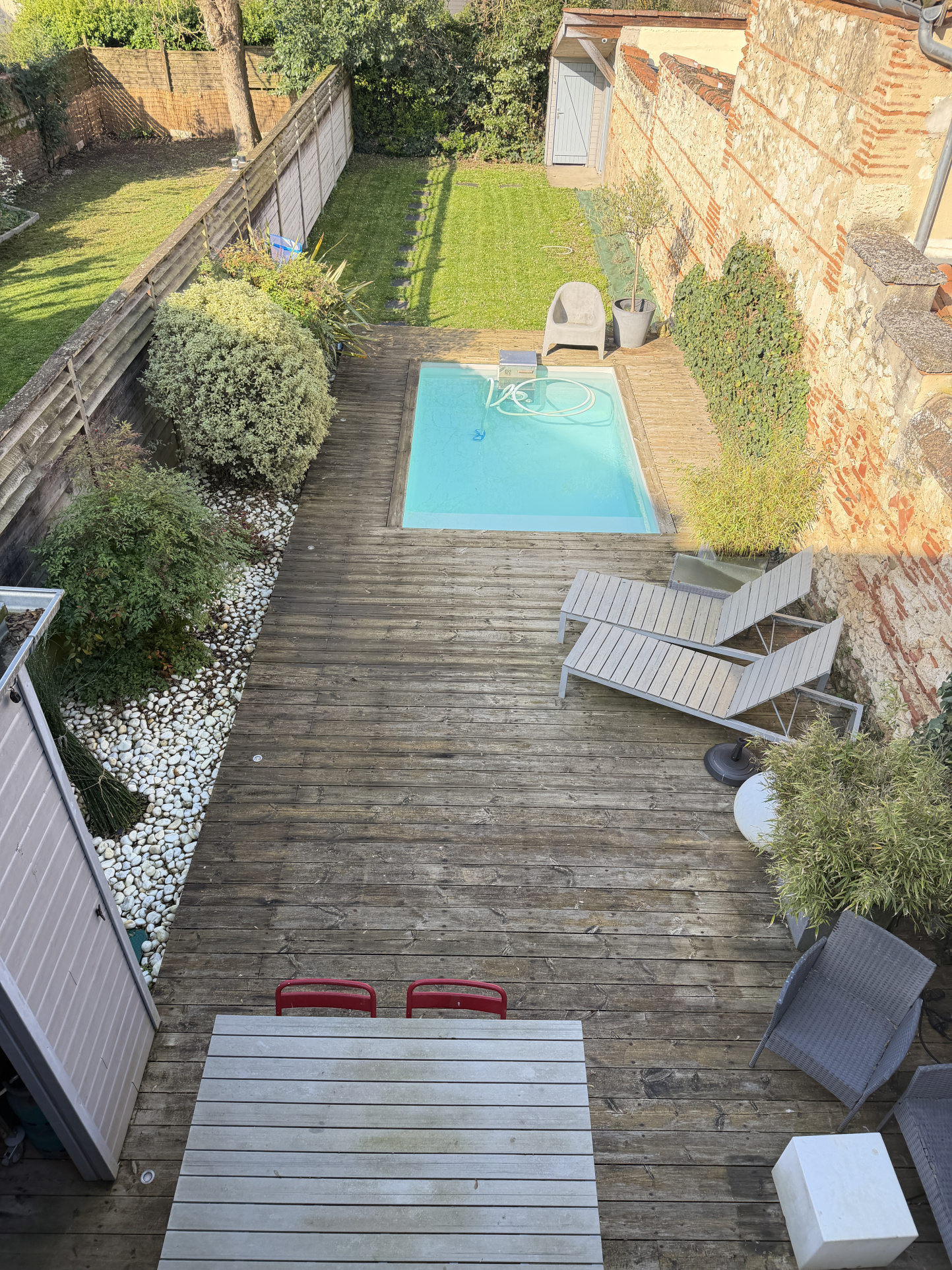 Rénovée avec des matériaux de qualité, elle propose une belle pièce de vie ouverte sur une terrasse bois avec piscinette, une suite parentale avec terrasse privative ainsi que trois chambres supplémentaires, idéales pour une vie de famille confortable.