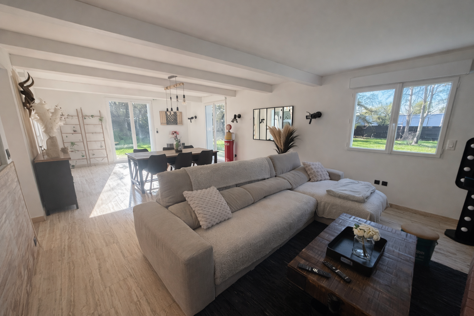L'agence Immoplus propose aux amateurs de grands espaces ce pavillon individuel d'environ 200m2 habitable construit sur sous-sol complet offrant hall d'entrée, séjour salon d'environ 55m2, cuisine ouverte, cinq chambres dont une au rez-de-chaussée, un bureau, deux salles de bains.