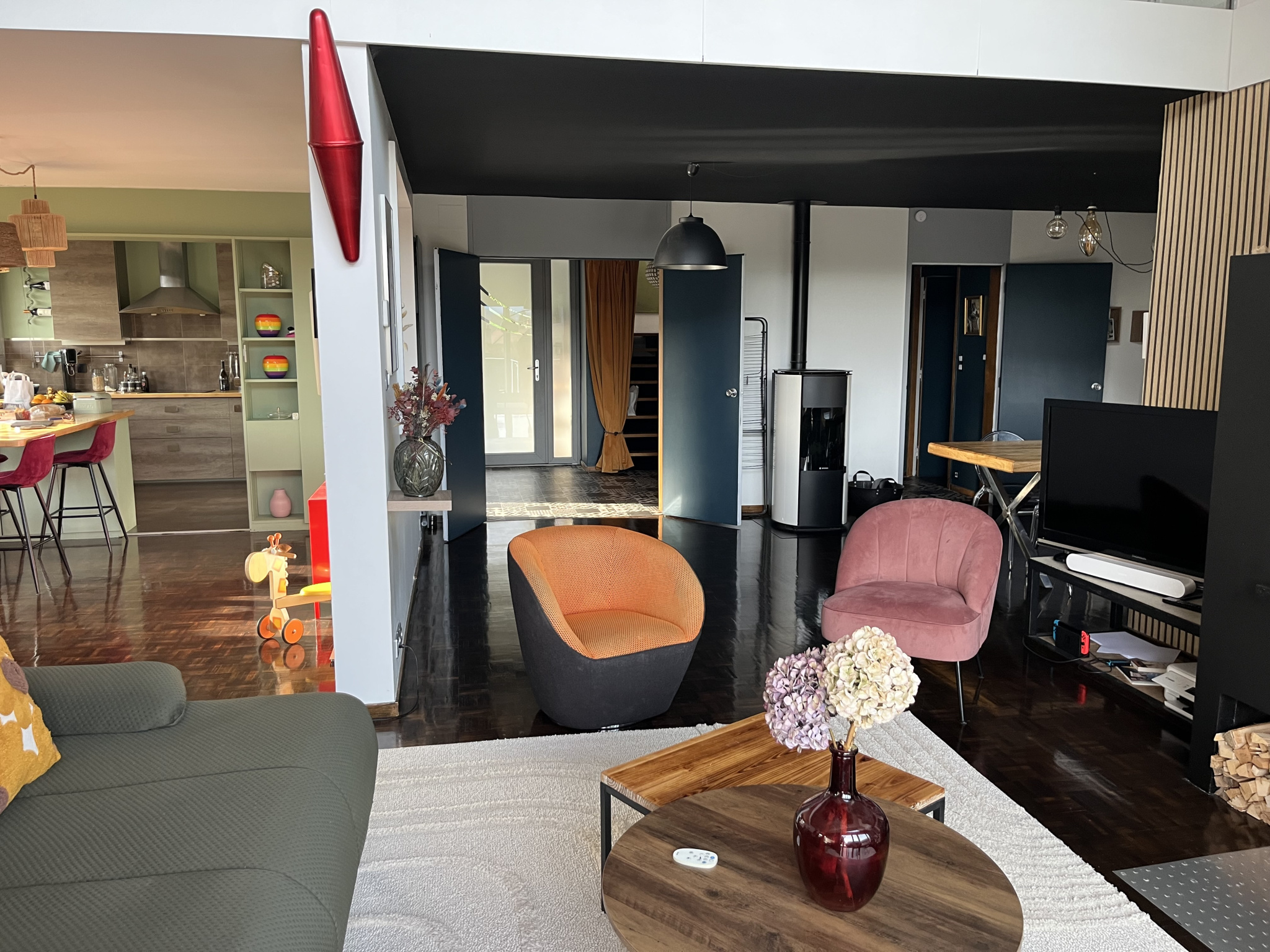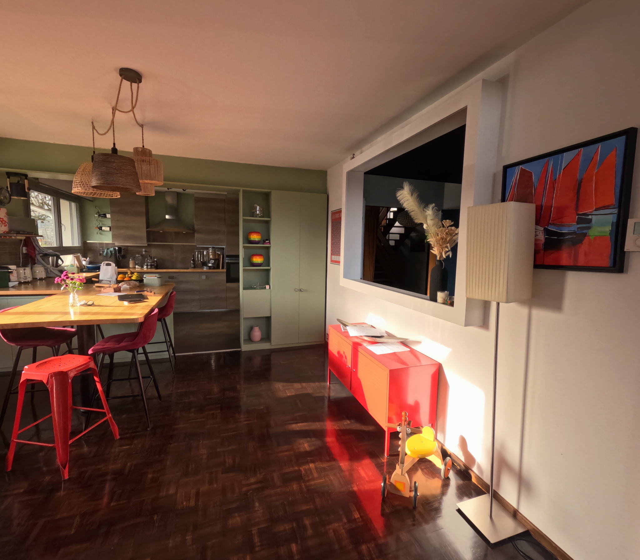À l'étage, une mezzanine, une quatrième chambre parentale avec dressing et salle d'eau offrent des espaces supplémentaires lumineux et fonctionnels.