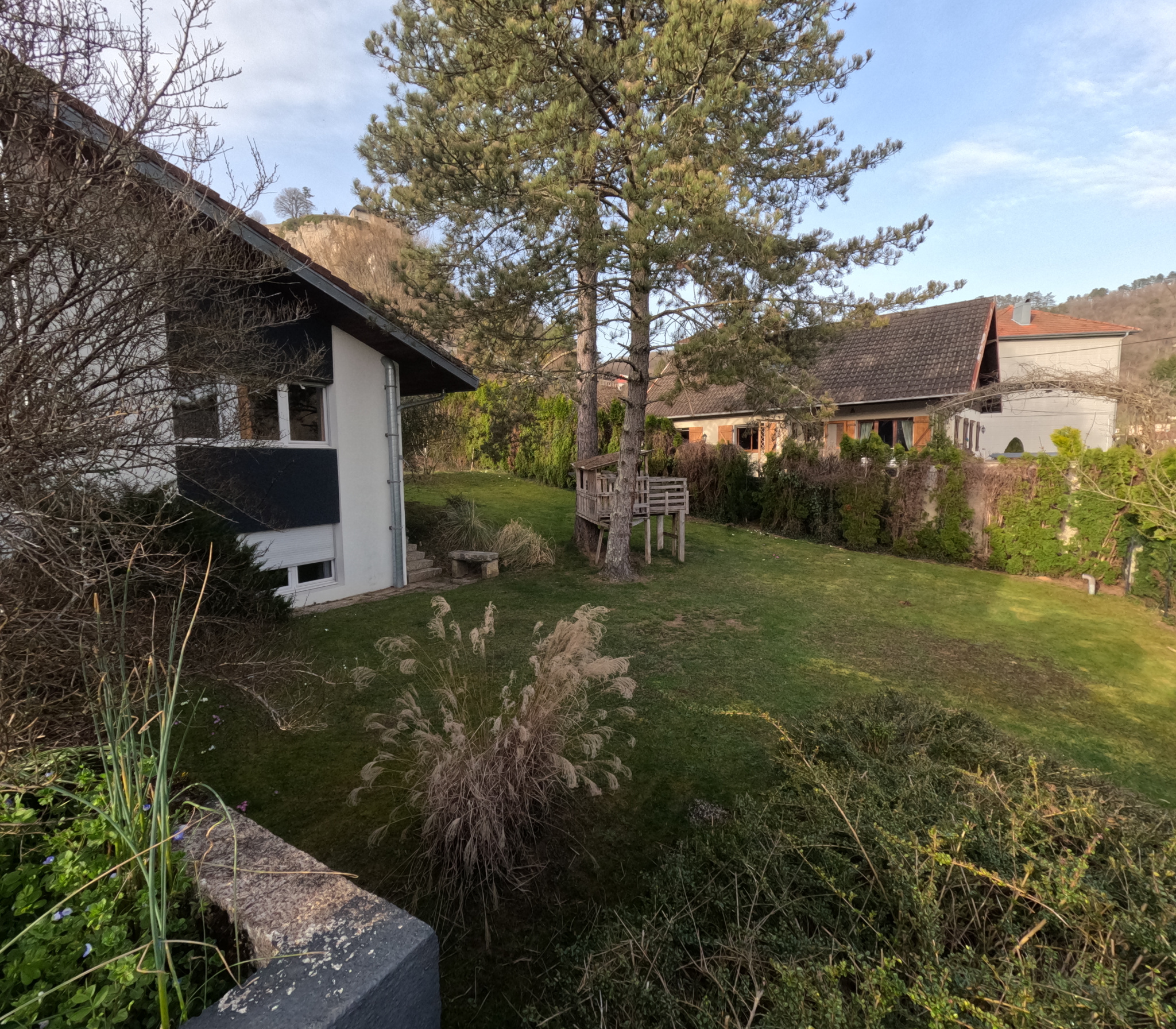 Le jardin arboré entoure la maison et complète l'ensemble avec tranquillité et charme. Garage avec recharge électrique, fibre optique et équipements modernes. Nombreuses place de parking.