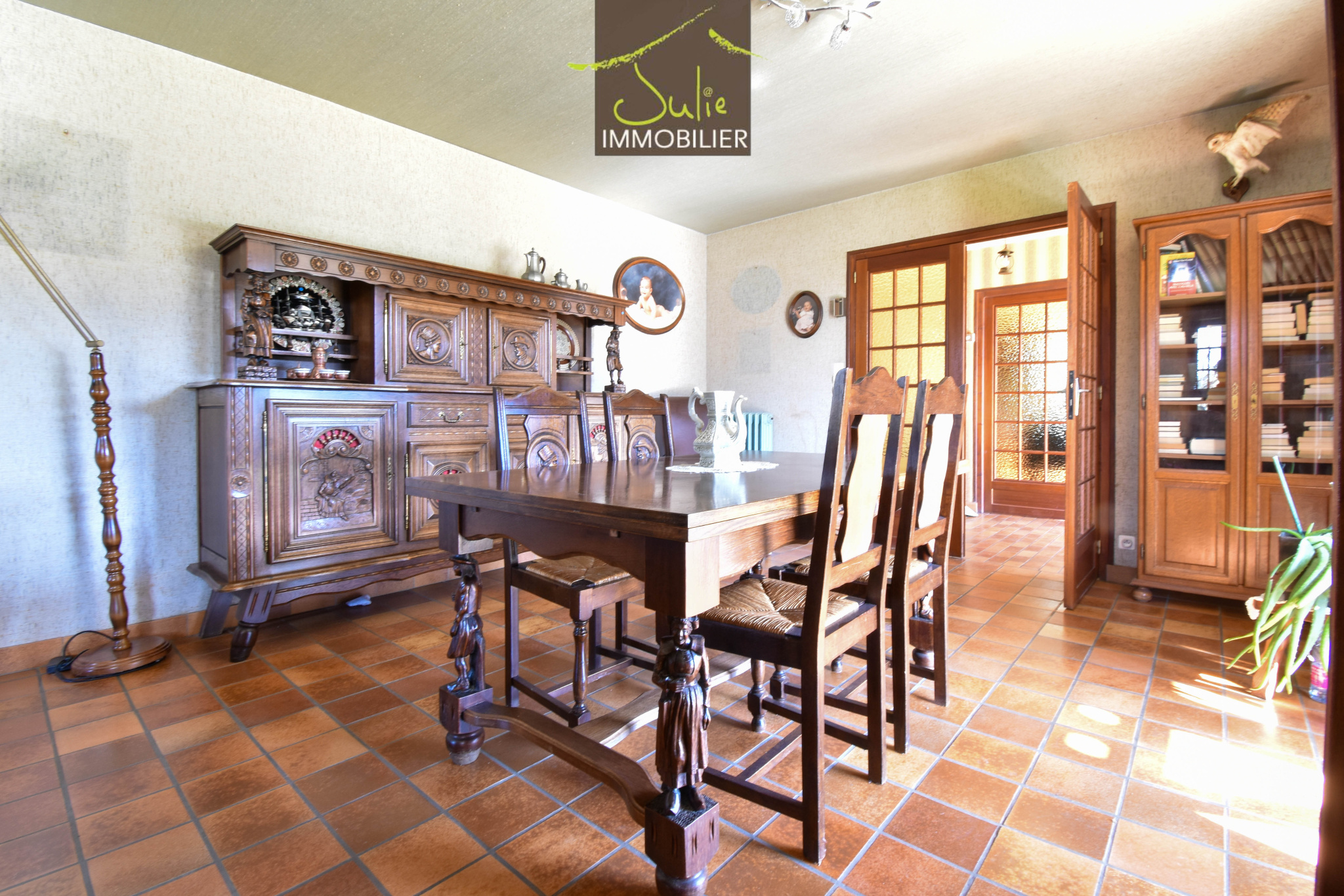 En sortie de bourg, dans un environnement verdoyant et calme, ce pavillon de 1979 offre un cadre de vie agréable. Ce pavillon sur sous-sol de 128 m2 et bénéficiant d'un accès de plain-pied séduit par ses volumes et son environnement. La maison propose une belle pièce de vie de 36 m2 avec cheminée, ouverte sur une terrasse couverte, la cuisine aménagée de 21 m2, spacieuse et conviviale, complète cet espace de vie lumineux. Un grand dégagement dessert trois chambres ainsi qu'une salle d'eau. Le sous-sol complet constitue un véritable atout : garage de 35 m2 avec portail motorisé, cave, buanderie, bureau et chaufferie offrent de nombreuses possibilités de rangement ou d'aménagement selon vos besoins. À l'extérieur, le terrain arboré accueille un étang et un abri pour camping-car, ajoutant un réel confort pour les amateurs d'espace et de nature. Côté pratique : un ascenseur intégré facilite l'accès entre les niveuaux. Une maison aux beaux volumes, idéale pour une vie au calme tout en restant proche des commodités.