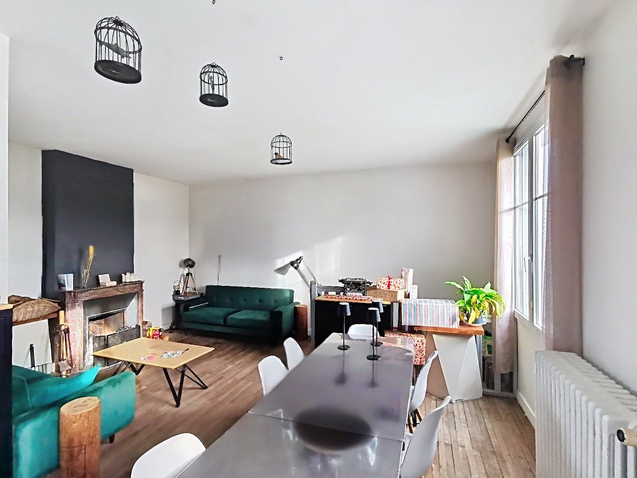 Cuisine aménagée ouverte sur Séjour (cheminée) 40 m2 - accès s/sol