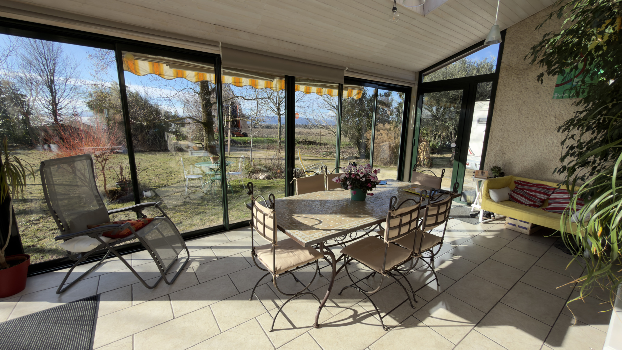 Située dans un hameau entre Valence, Chabeuil, Malissard et Montélier, cette maison de 131m2 (115m2 loi Carrez) dispose aussi d'une belle véranda de 23m2, d'une cuisine équipée récente, et de 3 chambres à l'étage dont une double avec mezzanine.