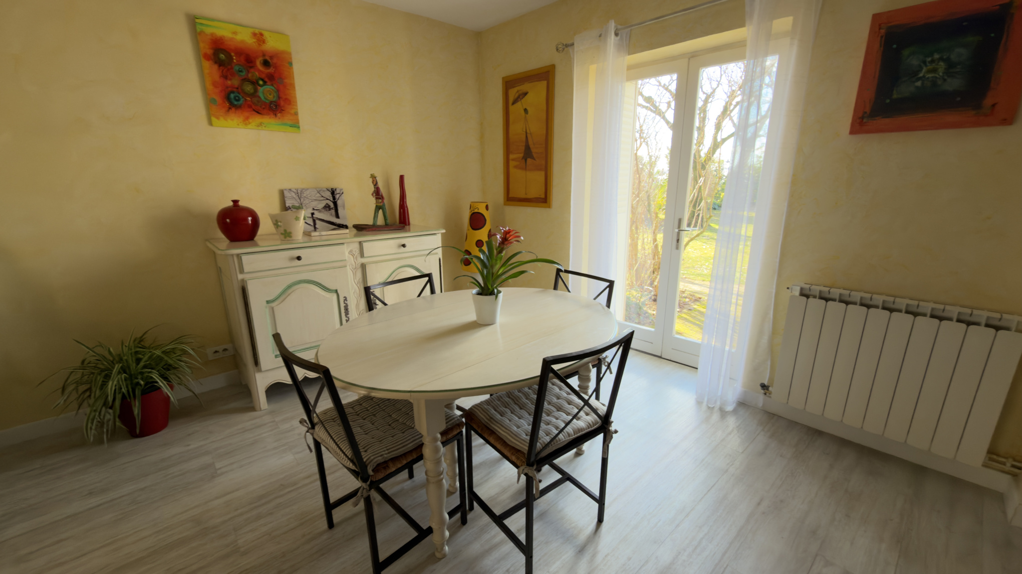 Le chauffage central au fioul est complété par une cheminée qui permet de chauffer l'ensemble de la maison via un extracteur d'air.