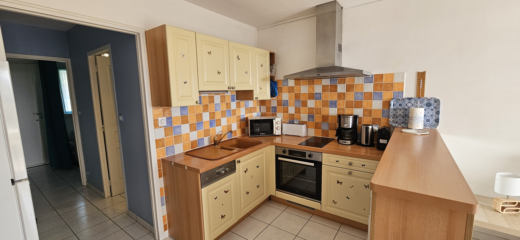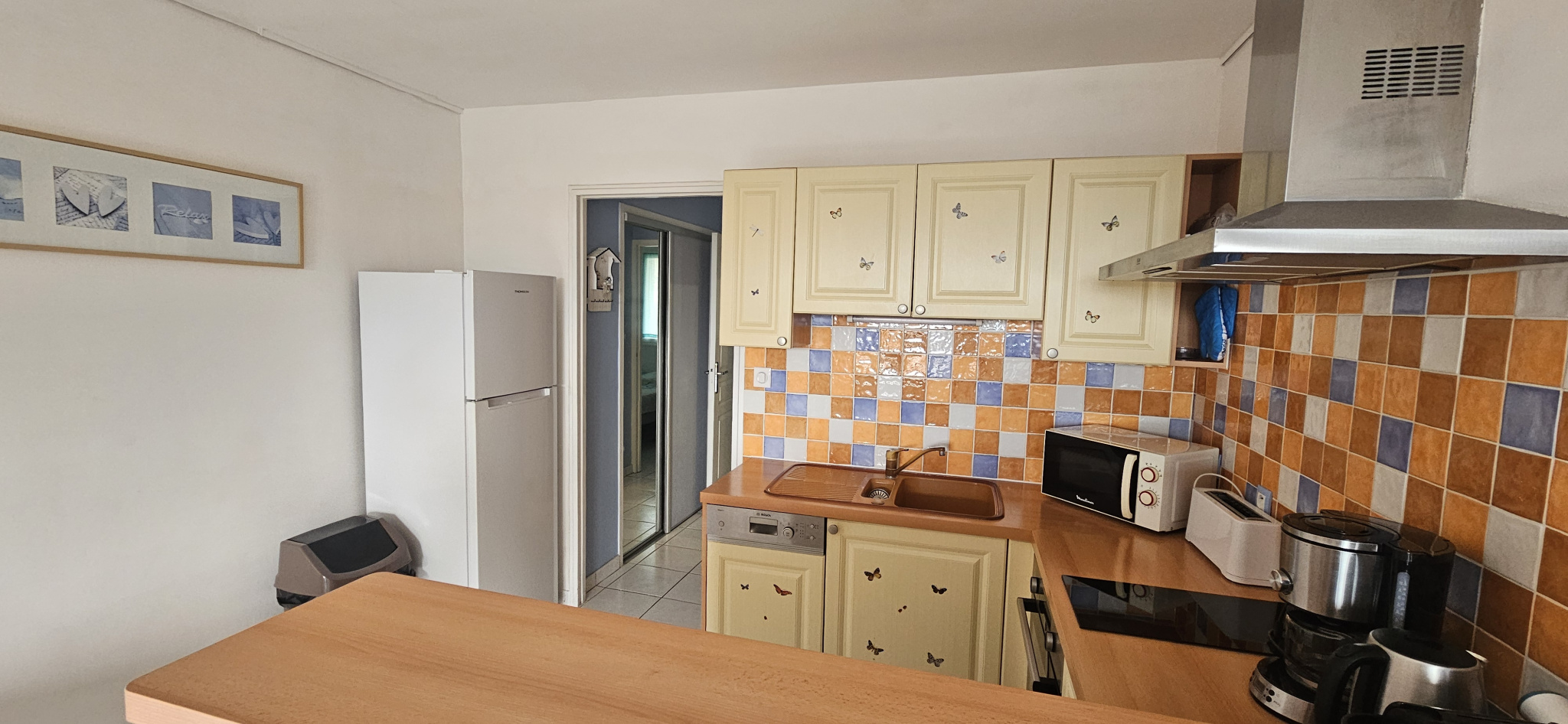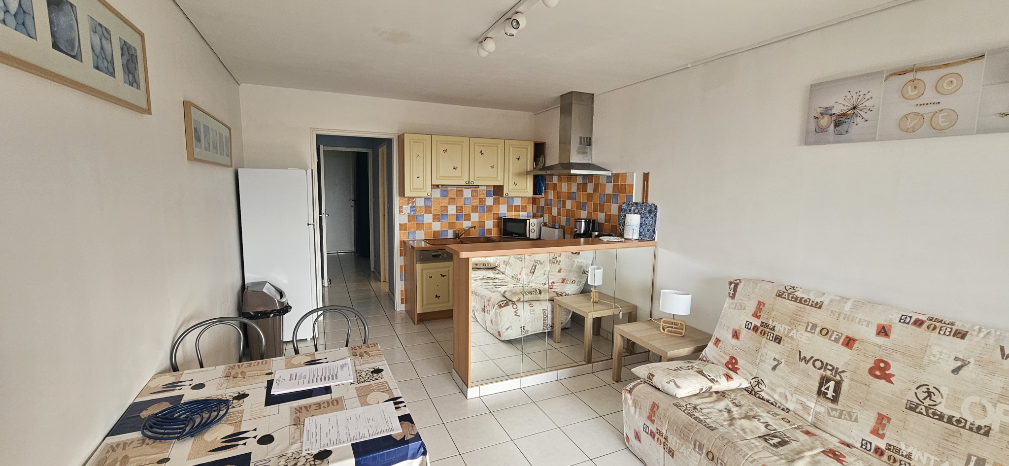 Appartement de type T1 bis d'environ 32 m2 comprenant un coin nuit avec placard, un dégagement avec placard, une salle d'eau avec WC et emplacement pour machine à laver, ainsi qu'une pièce de vie avec cuisine américaine aménagée et équipée, donnant sur un balcon de 6,5 m2 avec vue mer. Situé au 2? et dernier étage d'une résidence au calme absolu, à proximité des plages et des commerces. Une place de parking privative ainsi qu'une cave accessible pour les vélos complètent ce bien.
