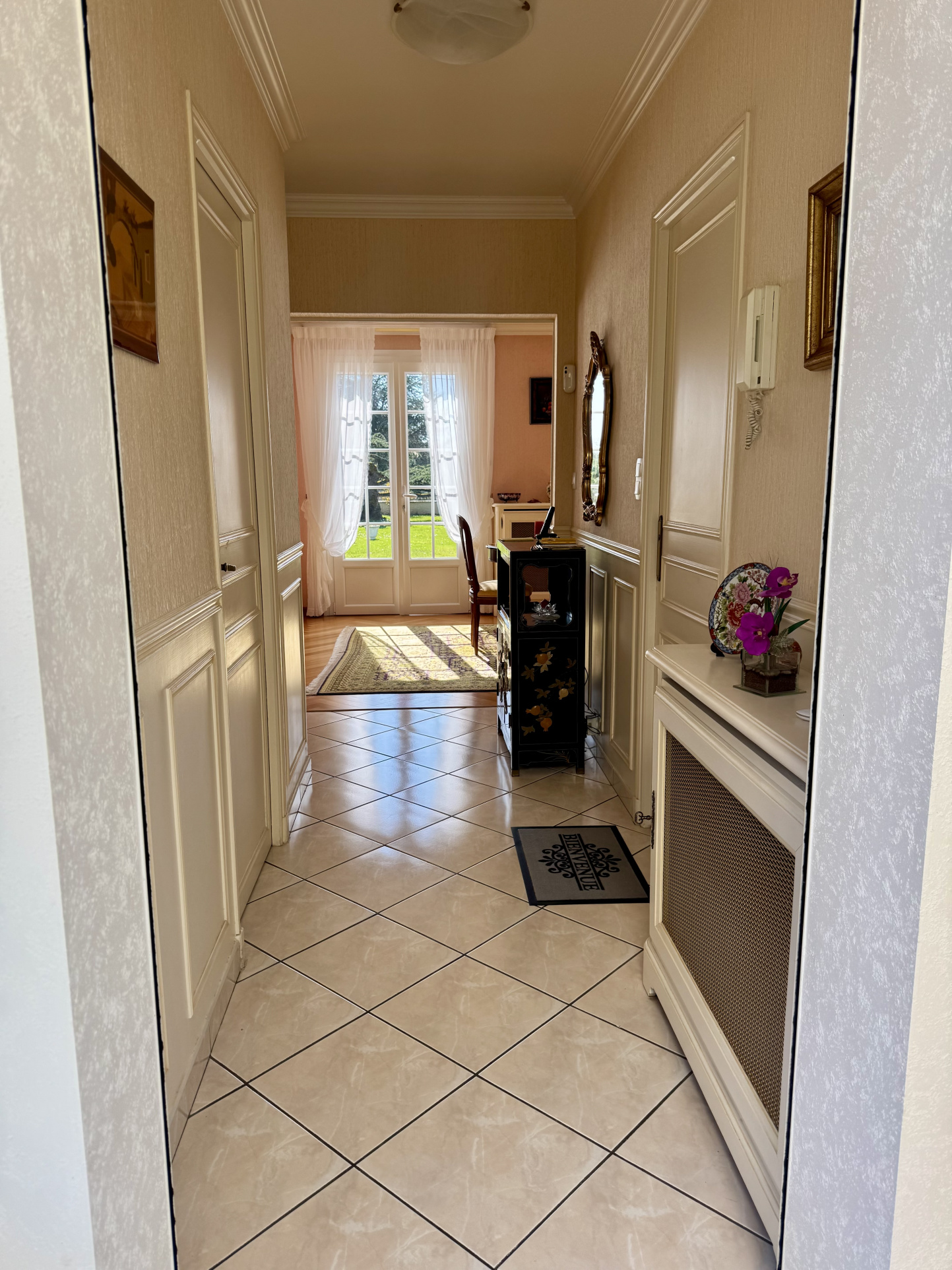 Cette maison lumineuse et paisible, d'environ 132 m2 est composée : de 2 entrées (soit par la véranda ou par l'ancien garage), une cuisine aménagée, un salon, un séjour, un couloir dessert, une salle d'eau, un WC, 2 chambres, un bureau et une buanderie/ chaufferie.