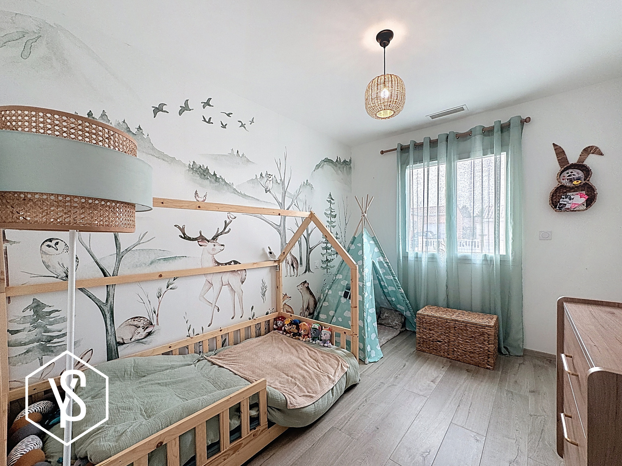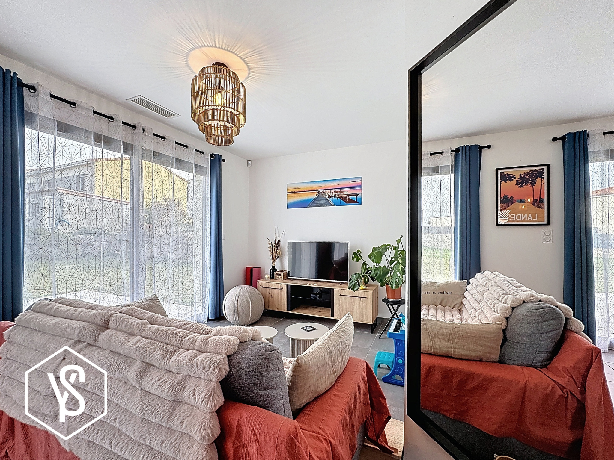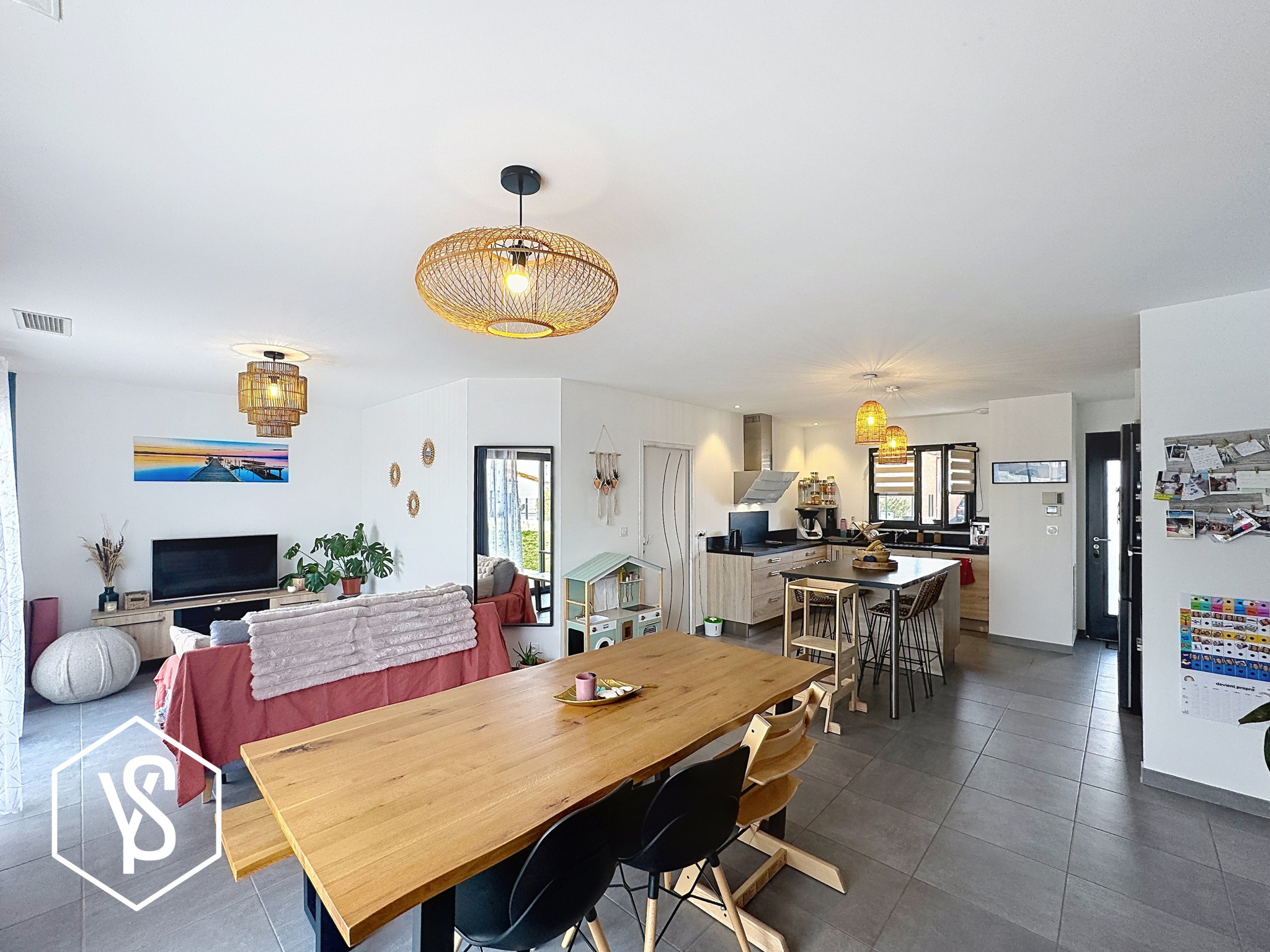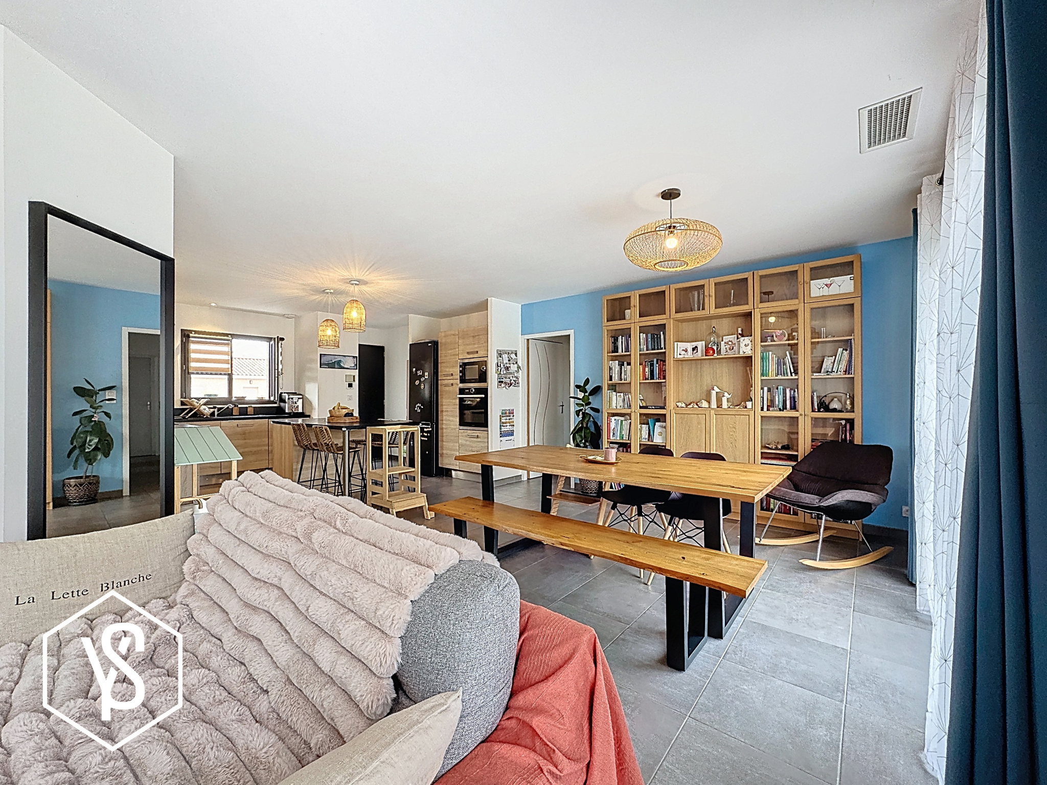 Les volumes sont astucieusement répartis : l'entrée dévoile une jolie pièce de vie de 40m2 avec séjour et cuisine ouverte entièrement équipée. La pièce de vie qui ouvre de par ses baies vitrées sur une jolie terrasse exposée Sud-Est. Le couloir distribue 3 chambres chacune avec placards dont une parentale avec salle d'eau intégrée. Une salle de bains et des WC séparée complètent le coin nuit. Garage avec accès à une buanderie/cellier.