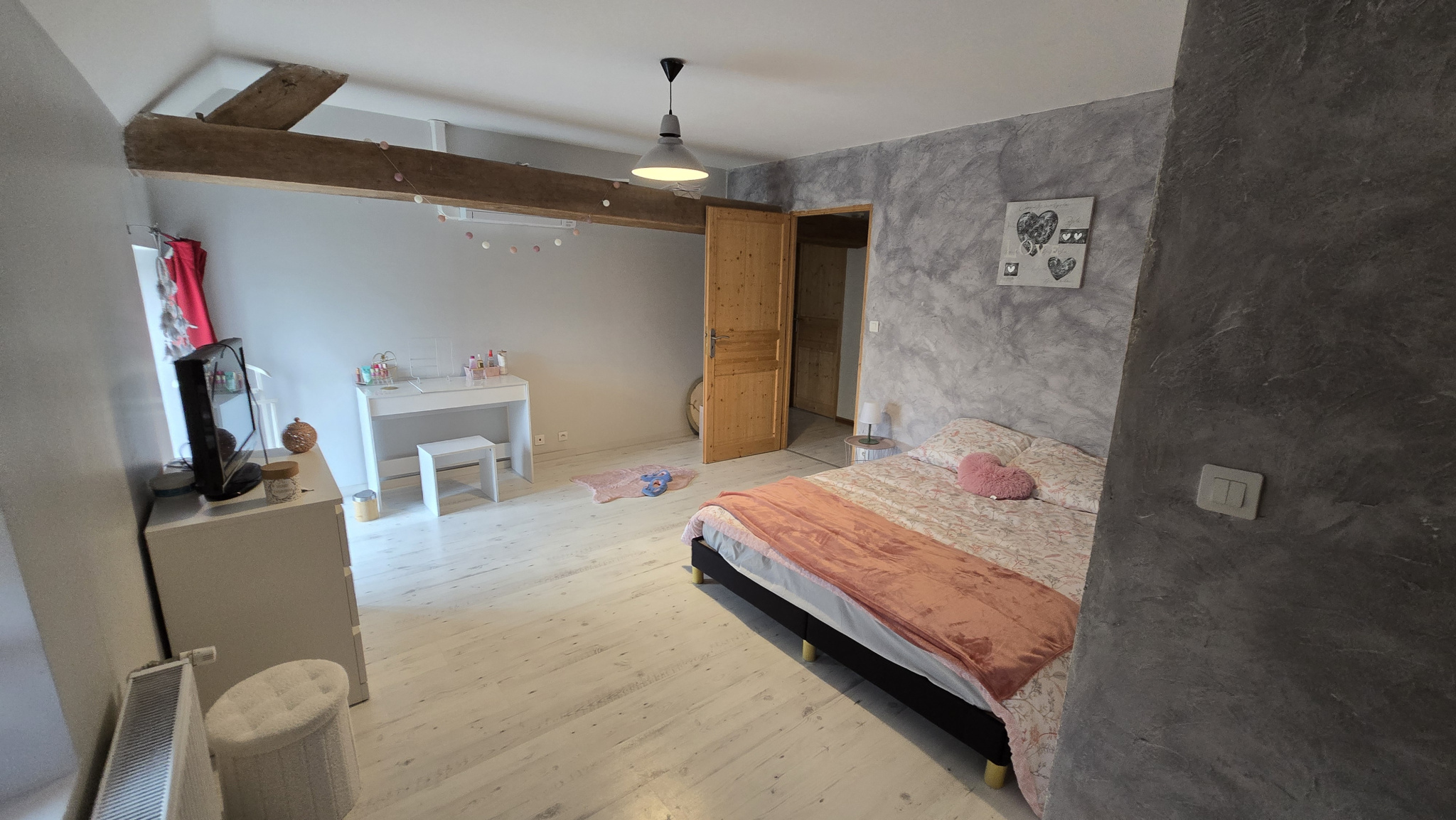 A l'étage une vaste salle de jeux pour le plaisir des petits et des grands, deux grandes chambres, un dressing, un wc et une salle d'eau.