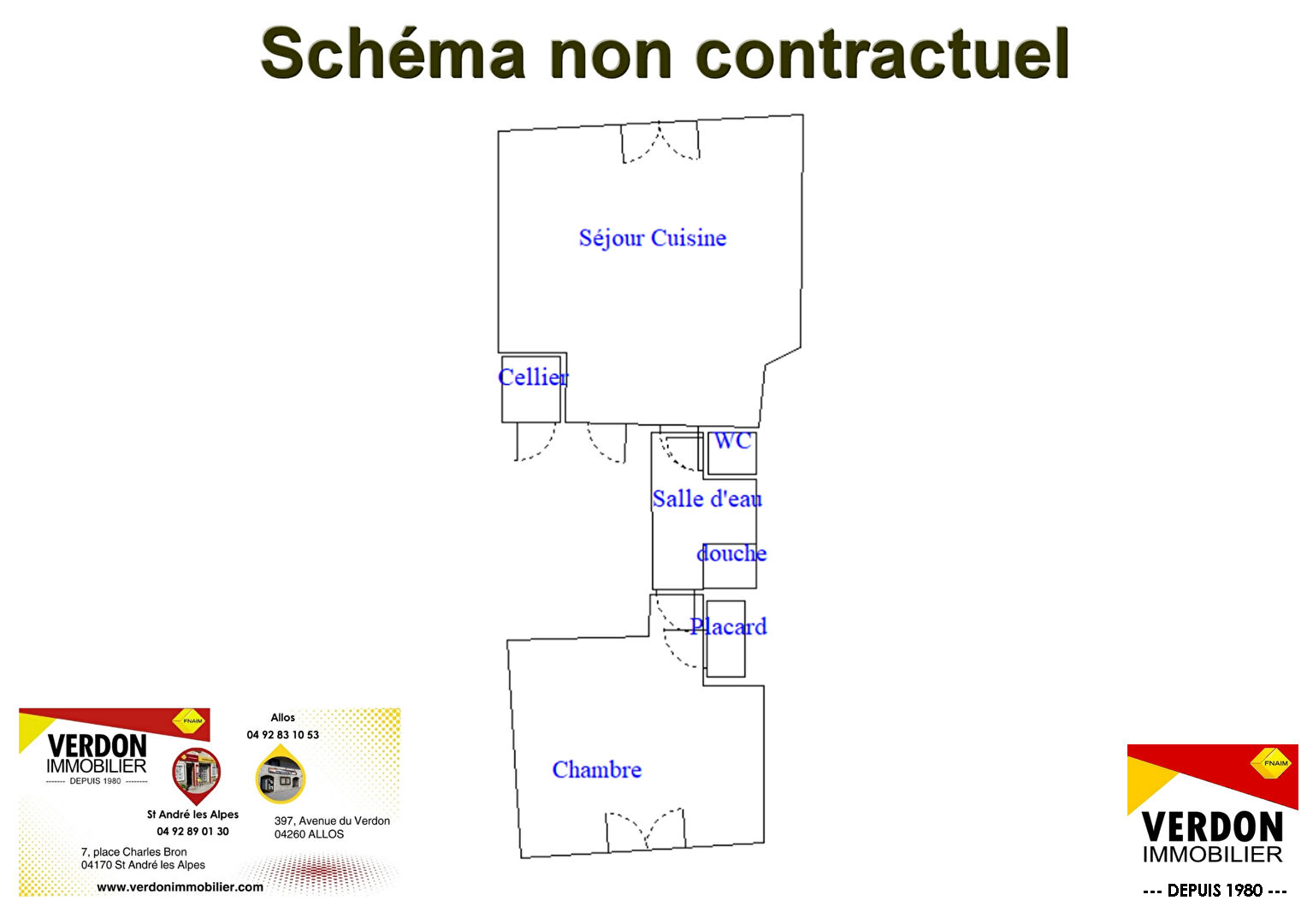 EXCLUSIVITE. Beauvezer (04), village typique de montagne tous loisirs été / hivers (ski, pêche, acro-branche, activité eau vive,...), appartement au 2eme étage comprenant : Un séjour avec cuisine de 19m², une chambre, une salle d'eau, un WC et un cellier. Bien aménagé mais quelques travaux à prévoir. Jolie vue. 8 lots, charges 8Euro/mois. Ref1678
