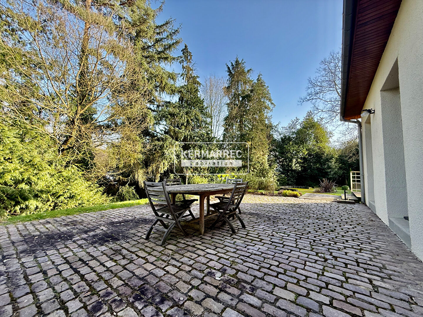 À l'extérieur, le magnifique jardin arboré, intime et soigneusement entretenu, constitue un véritable écrin de verdure. Une grande cour bétonnée permet par ailleurs un stationnement confortable pour plusieurs véhicules.