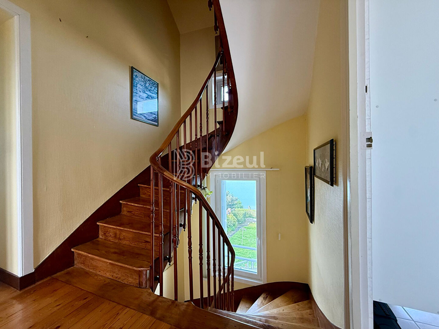 Elle comprend au rez-de-chaussée : une entrée s'ouvrant sur un vaste dégagement avec placard desservant la pièce de vie exposé est/ouest, elle bénéficie d'une vue mer exceptionnelle grâce à son bow-window, d'une cuisine indépendante avec un accès direct à la terrasse et un wc indépendant avec lave-mains.