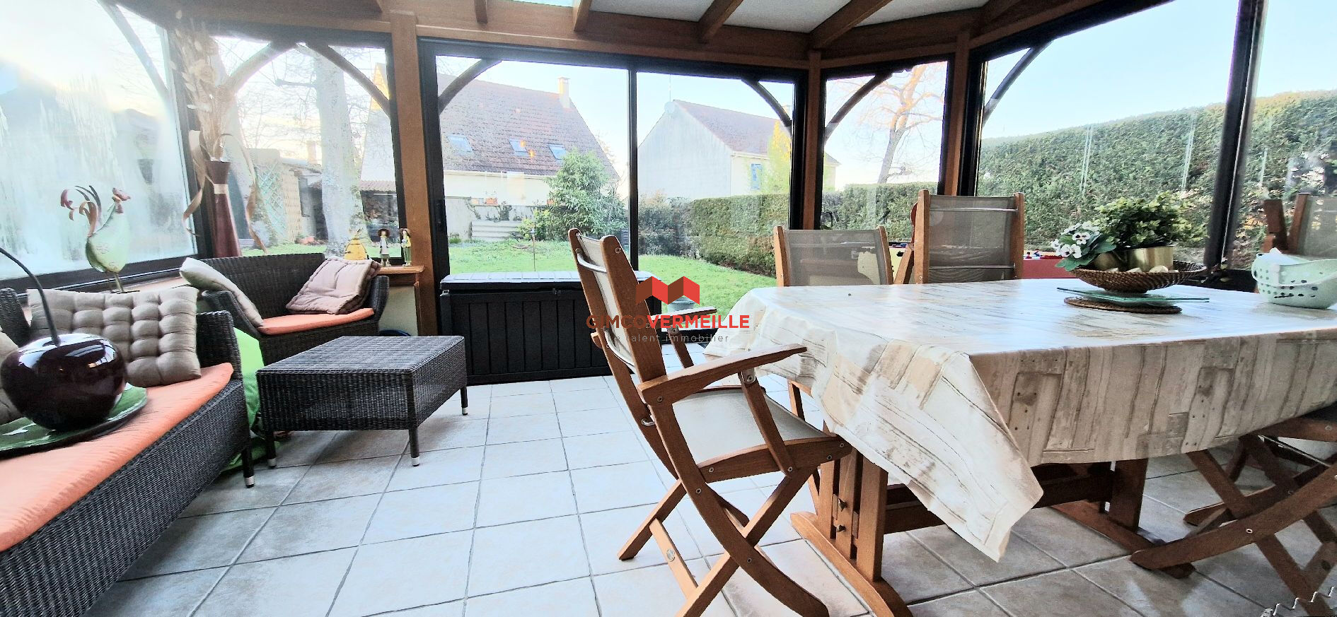 Découvrez cette charmante maison des années 2000 à vendre à Pierrelaye, dans le secteur prisé de la Gare. D'une surface habitable de 140 m² au sol sur un terrain de 587 m², cette maison de plain-pied offre 6 pièces dont 4 chambres, avec une chambre au rez-de-chaussée et salle d'eau. Vous apprécierez une cuisine aménagée et équipée, un poêle à bois pour une ambiance chaleureuse, ainsi qu'un chauffage électrique par radiants et une eau chaude thermodynamique. La maison dispose d'une salle de bain, d'une salle d'eau, et de 2 WC. Le calme est assuré grâce à son exposition Est-Ouest et ses fenêtres en PVC double vitrage avec volets roulants électriques. À l'extérieur, profitez d'une terrasse, d'un sous-sol total avec gara , de 4 places de parking, d'une cave et d'une véranda. L'accès PMR est également disponible. Située à seulement 6 minutes de la gare de Pierrelaye et à 5 minutes des écoles telles que le Collège le Petit Bois, l'École élémentaire Marie Curie, et l'École maternelle Louise Michel, cette maison est idéalement placée à proximité de nombreux commerces, restaurants, supermarchés, et services. Le tout raccordé au tout à l'égout. Prix : 448 000 Euro. Contactez l'agence GIMCOVERMEILLE - Conflans-Sainte-Honorine pour organiser une visite.