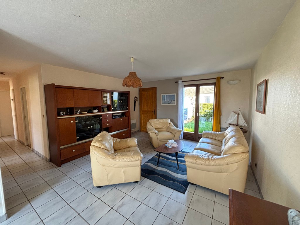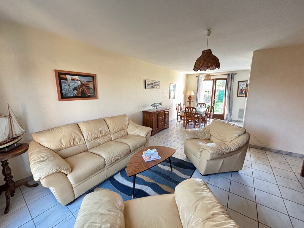 Maison d'habitation située dans un quartier calme de L'Aiguillon-sur-Mer. Elle se compose d'une belle pièce de vie avec une cuisine ouverte, aménagée et équipée, de trois chambres, d'une salle de bains, de toilettes et d'un garage de 22 m².