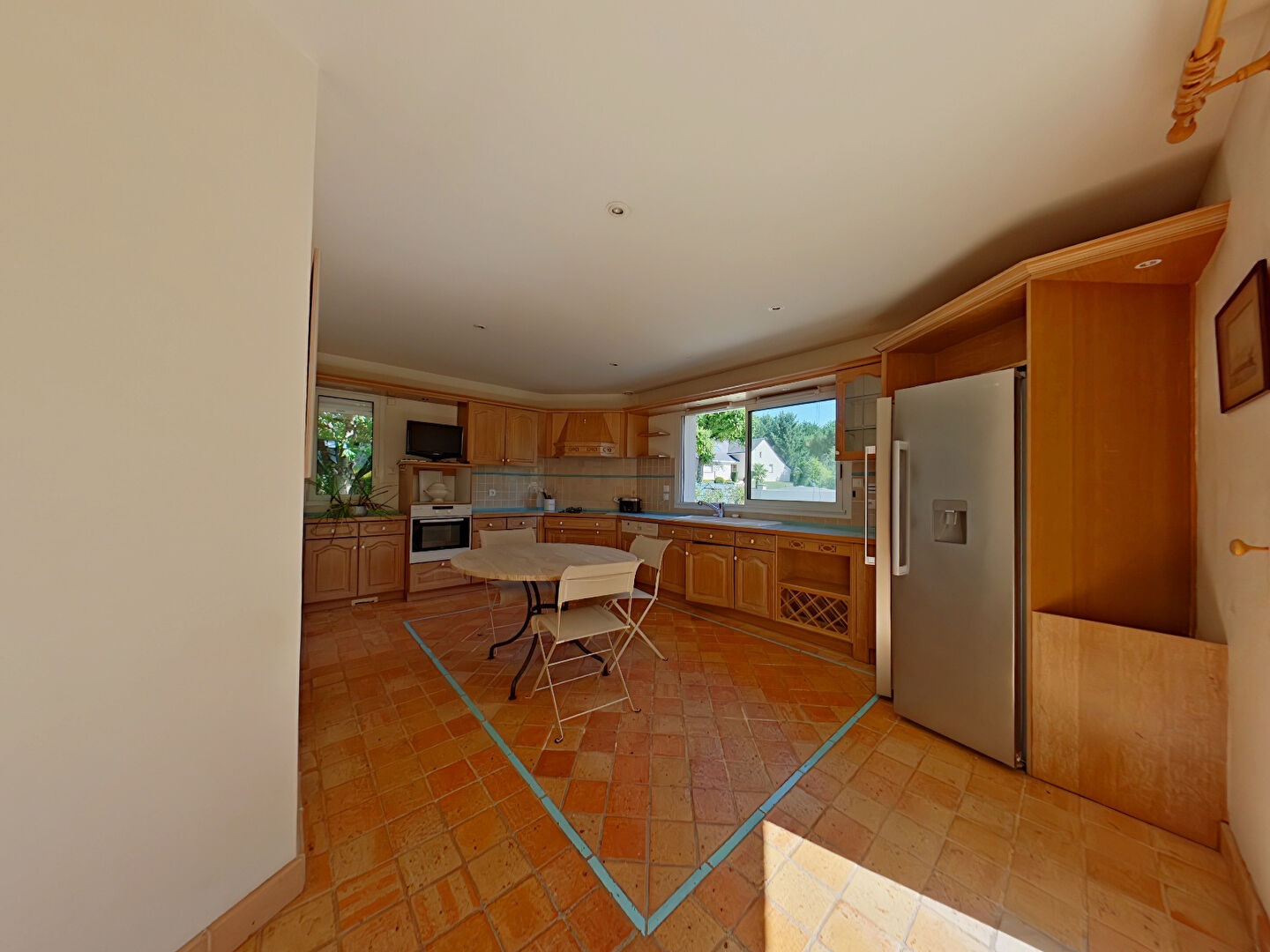 Lumineuse et fonctionnelle, située dans une impasse paisible aux abords du Golf de l'Ardrée, celle-ci se déploie sur 198,61 m² habitables et s'édifie sur une parcelle verdoyante et arborée de 1418m² .