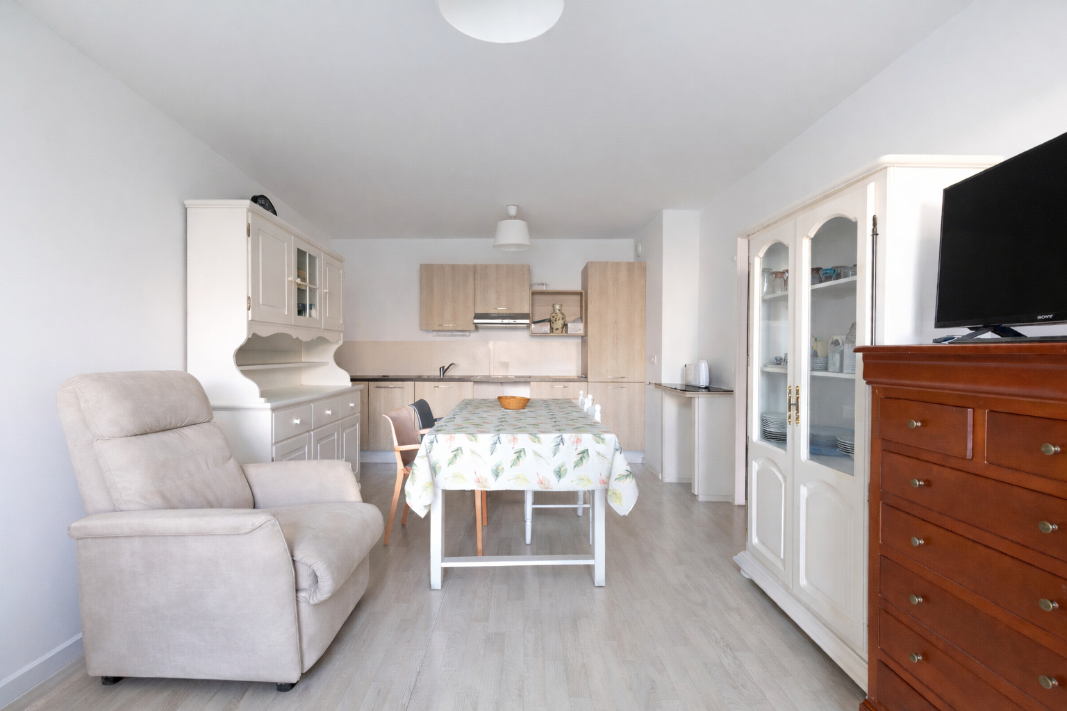 Le logement se compose d'une entrée avec placard, d'un séjour avec cuisine, d'une chambre avec placard, ainsi que d'une salle d'eau avec WC.
