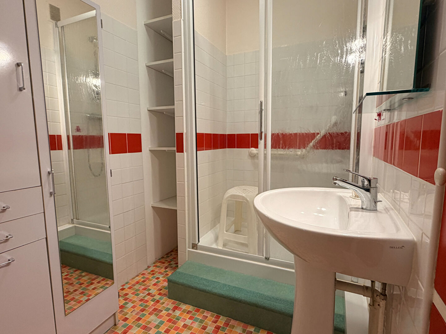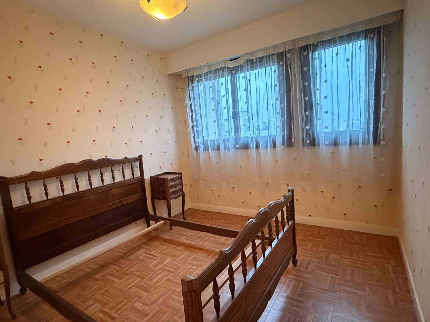 Il se compose d'une entrée, d'une cuisine indépendante, d'un salon/séjour de 17m², divers dégagements, un second salon de 12.30m² avec placard pouvant servir de troisième chambre, deux chambres, une salle d'eau et des toilettes.